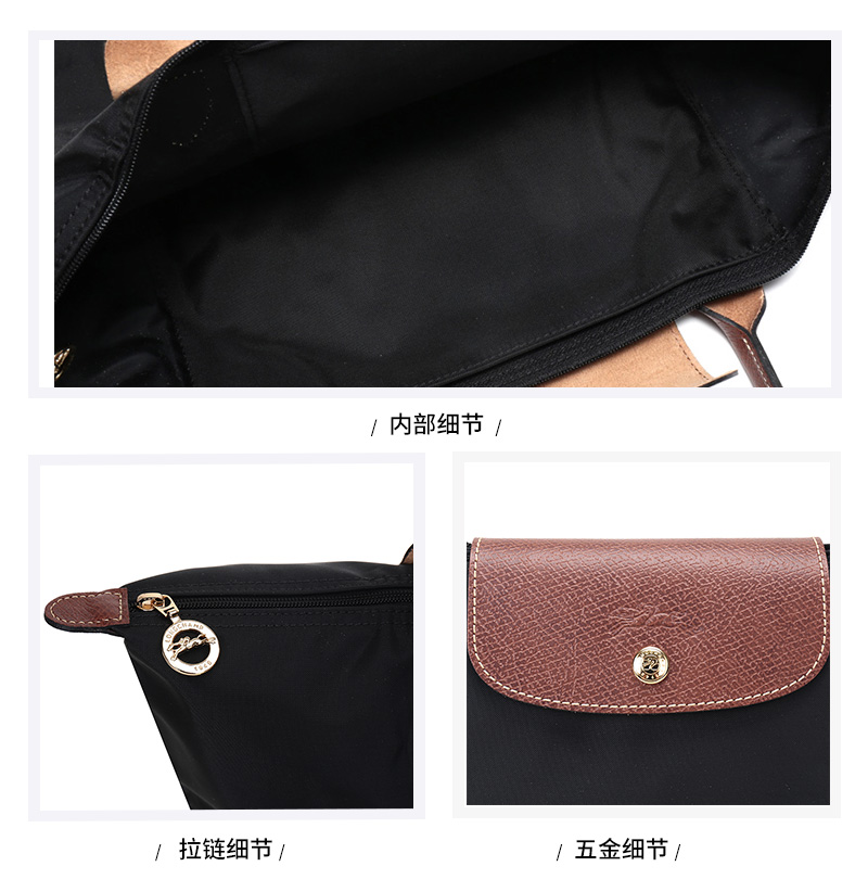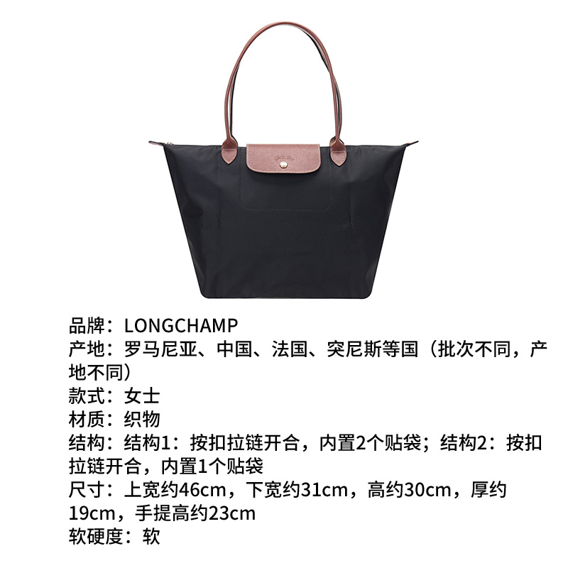 自营Longchamp 珑骧 新品 女士LE PLIAGE ORIGINAL系列黑色织物大号长柄可折叠手提包饺子包托特包购物袋 1899 089 001