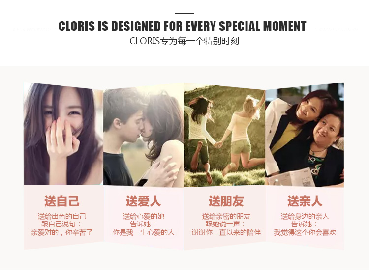 CLORIS创立于2008年,品牌诞生于香港,致力于原创设计制作最适合亚洲人的珠宝轻奢品牌。CLORIS 源自古希腊神话掌管鲜花的女神CONNIE CONSTANCE。简约,经典,艺术,超凡脱俗的设计是每一季原创新品的追求极致。 CLORIS注重珠宝的优雅,神圣,灵气。使得每件独特的作品得到最大程度的展现。