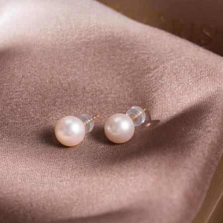 CLORIS 【热销礼物】克劳瑞斯 18k金 经典简约白珠海水珍珠耳钉 8-8.5mm 女神必备