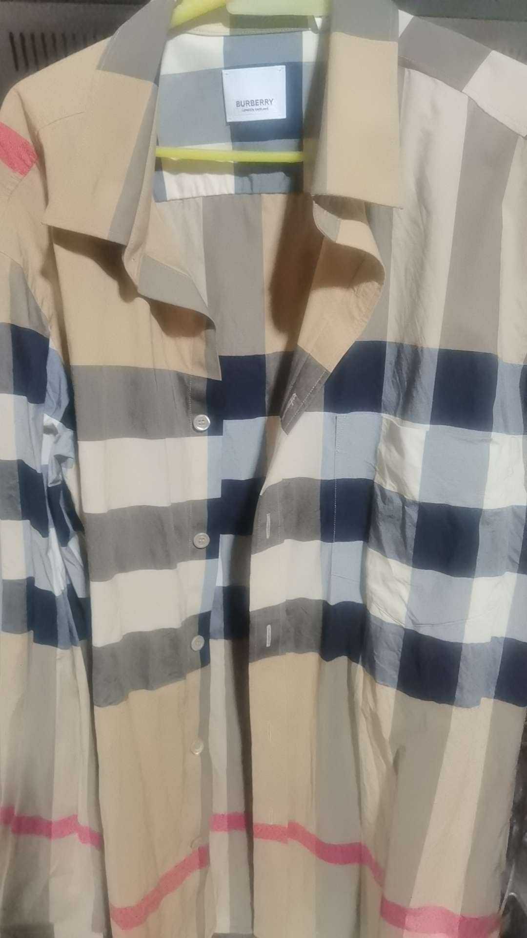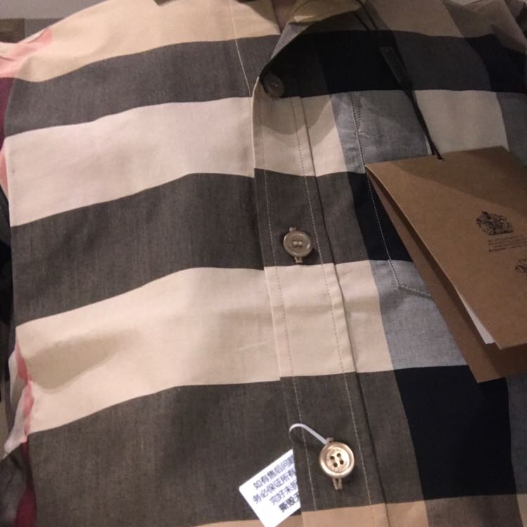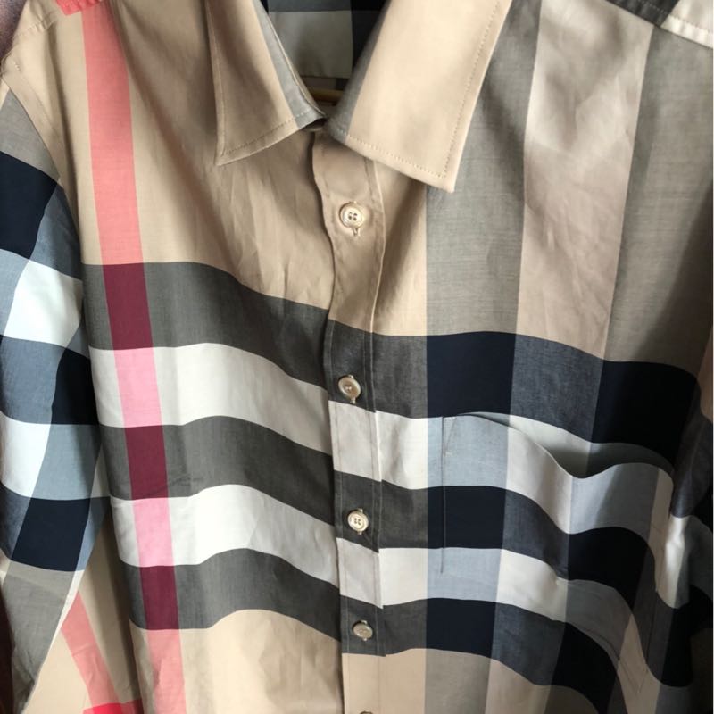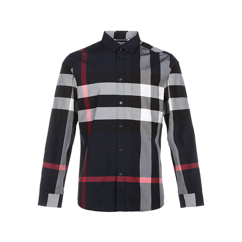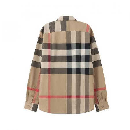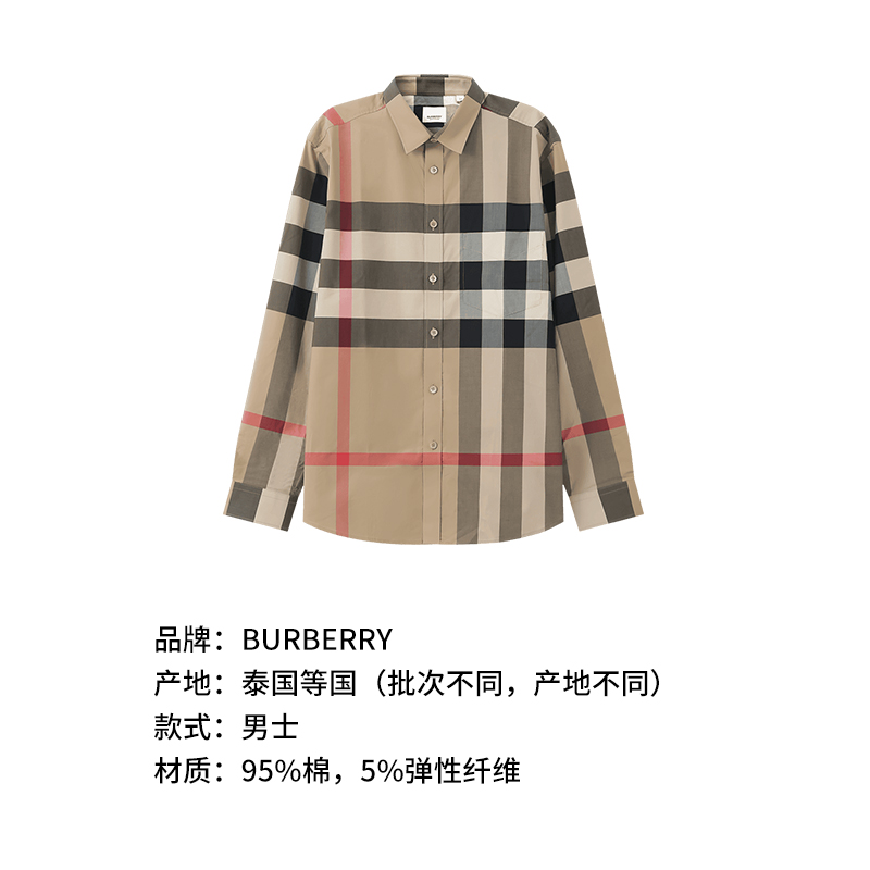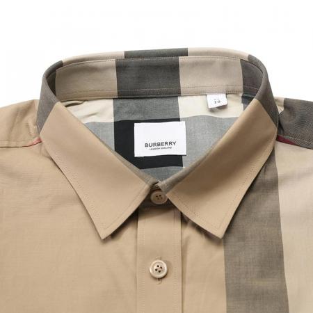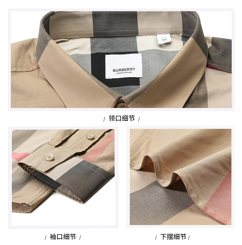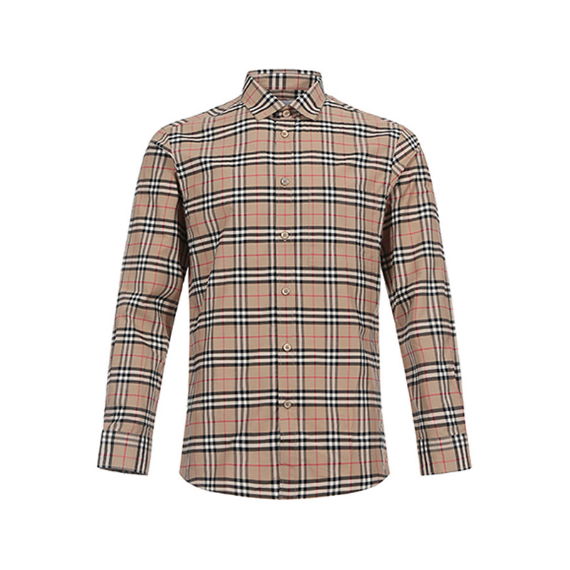 自营Burberry 博柏利 男士典藏米色格纹棉质长袖衬衫偏大宽松版 80102131