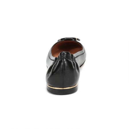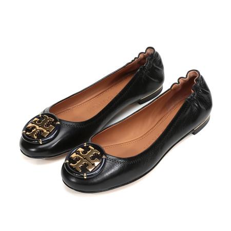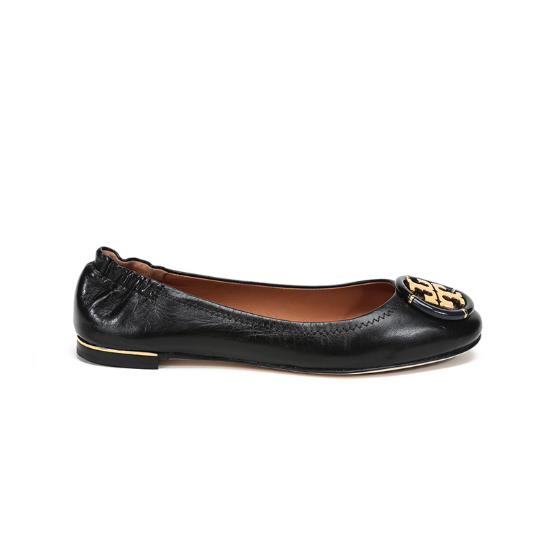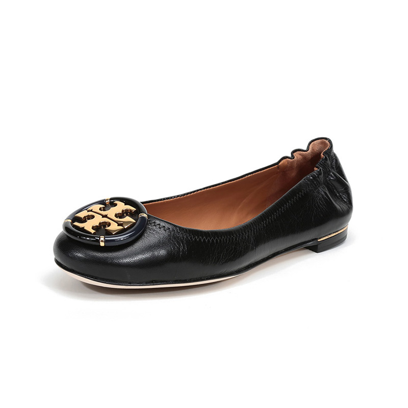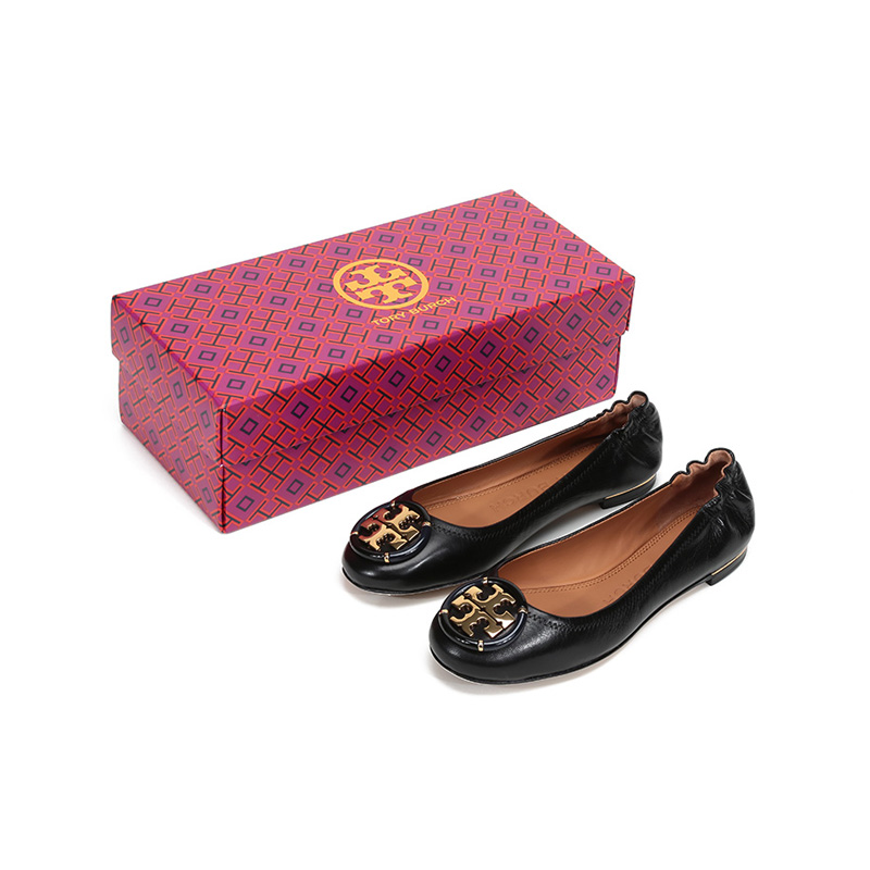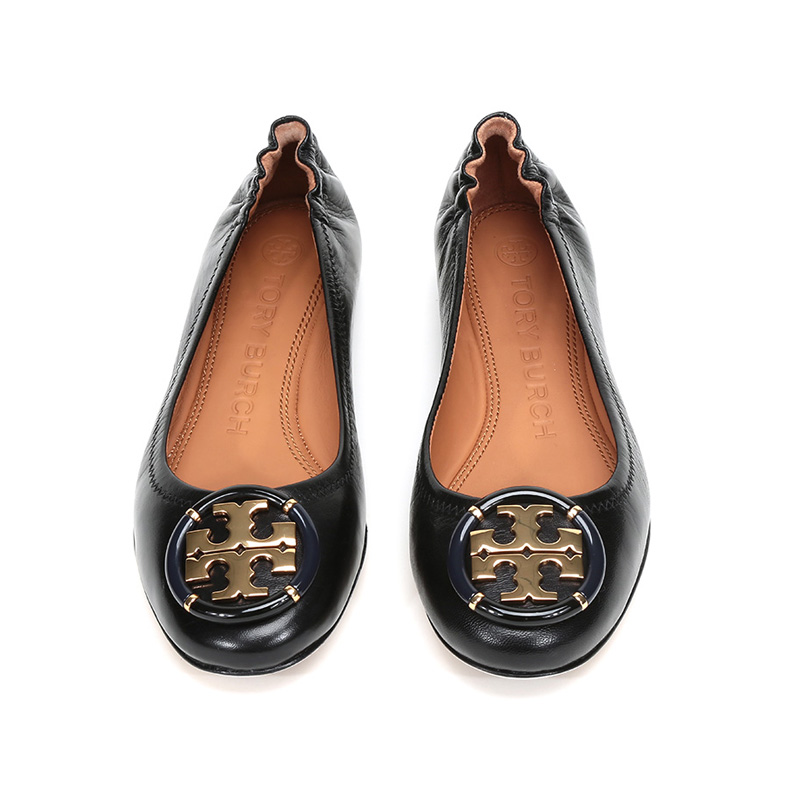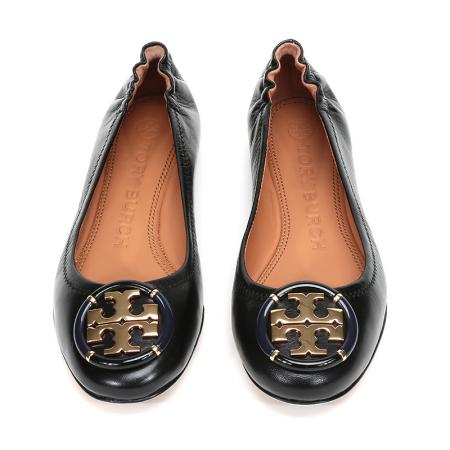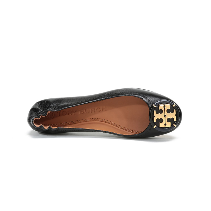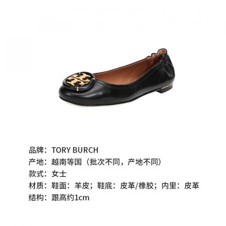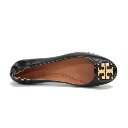 自营Tory Burch 汤丽柏琦女士Minnie系列黑色金属LOGO羊皮芭蕾平底鞋船鞋轻便舒适 74062 006