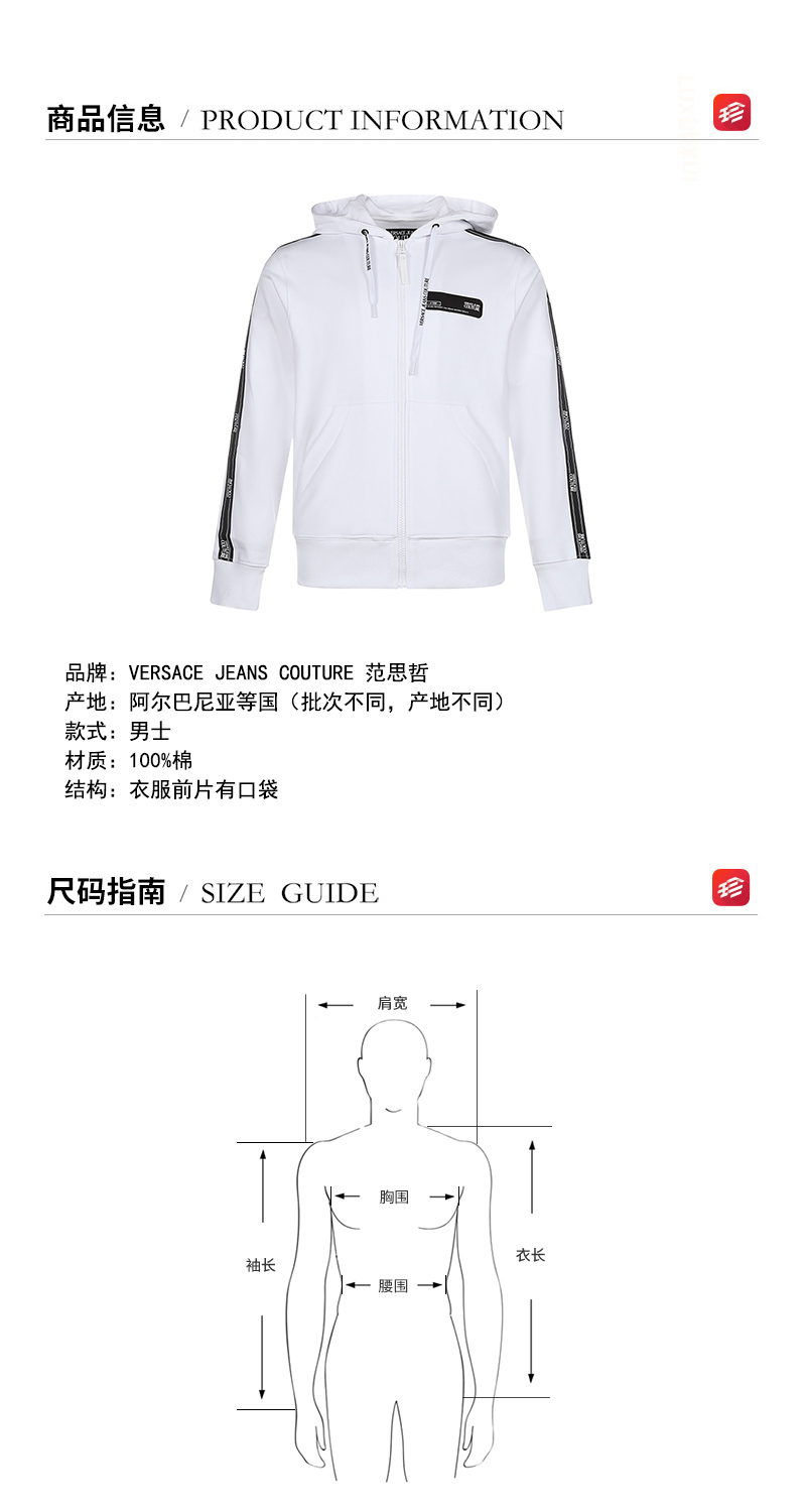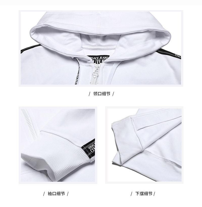 自营Versace Jeans Couture 范思哲 男士白色棉质连帽拉链开衫运动衫外套 B7GZA7A1 13988 003