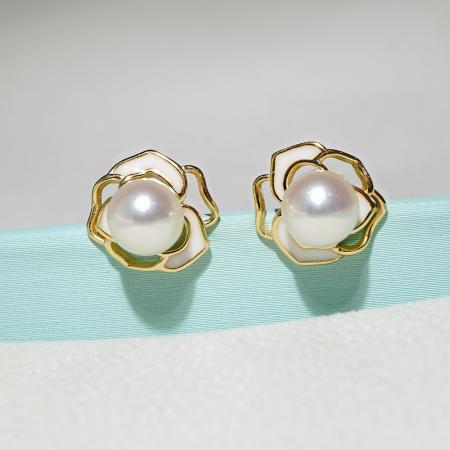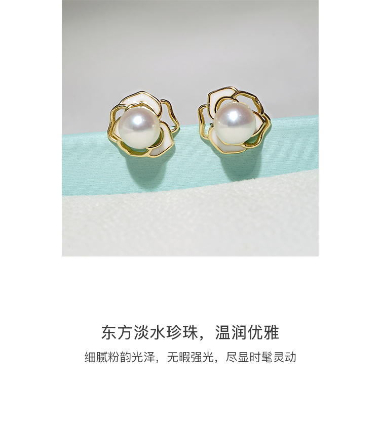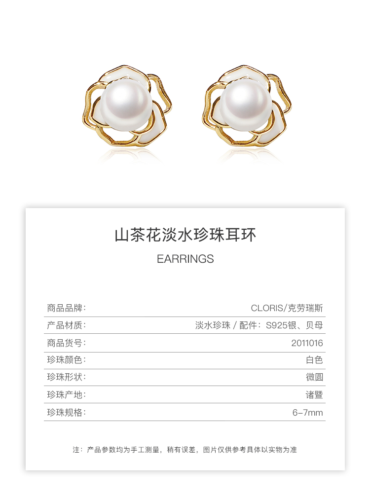 CLORIS 克劳瑞斯 【好物推荐】925银贝母山茶花耳钉 粒径6-7mm