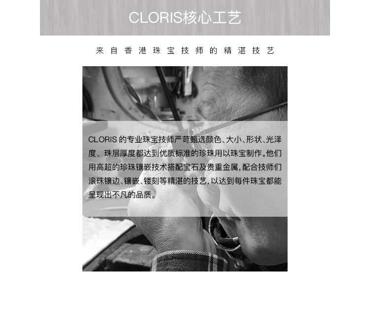 CLORIS创立于2008年,品牌诞生于香港,致力于原创设计制作最适合亚洲人的珠宝轻奢品牌。CLORIS 源自古希腊神话掌管鲜花的女神CONNIE CONSTANCE。简约,经典,艺术,超凡脱俗的设计是每一季原创新品的追求极致。 CLORIS注重珠宝的优雅,神圣,灵气。使得每件独特的作品得到最大程度的展现。