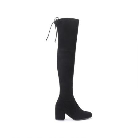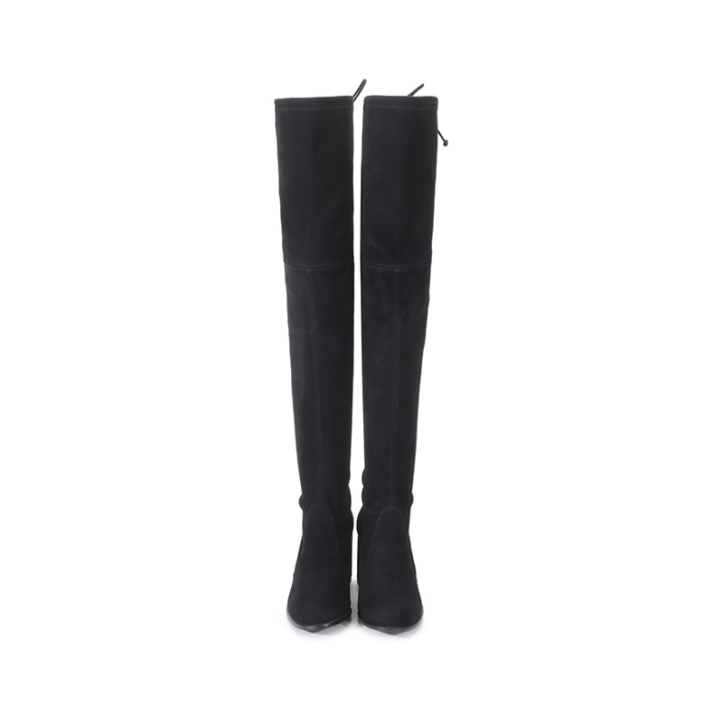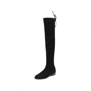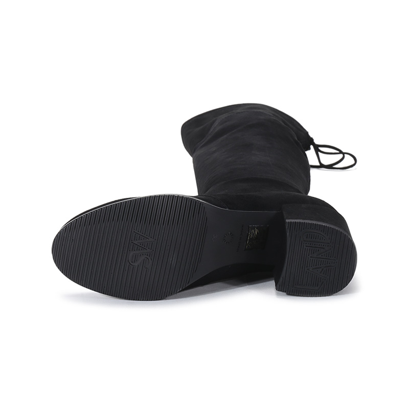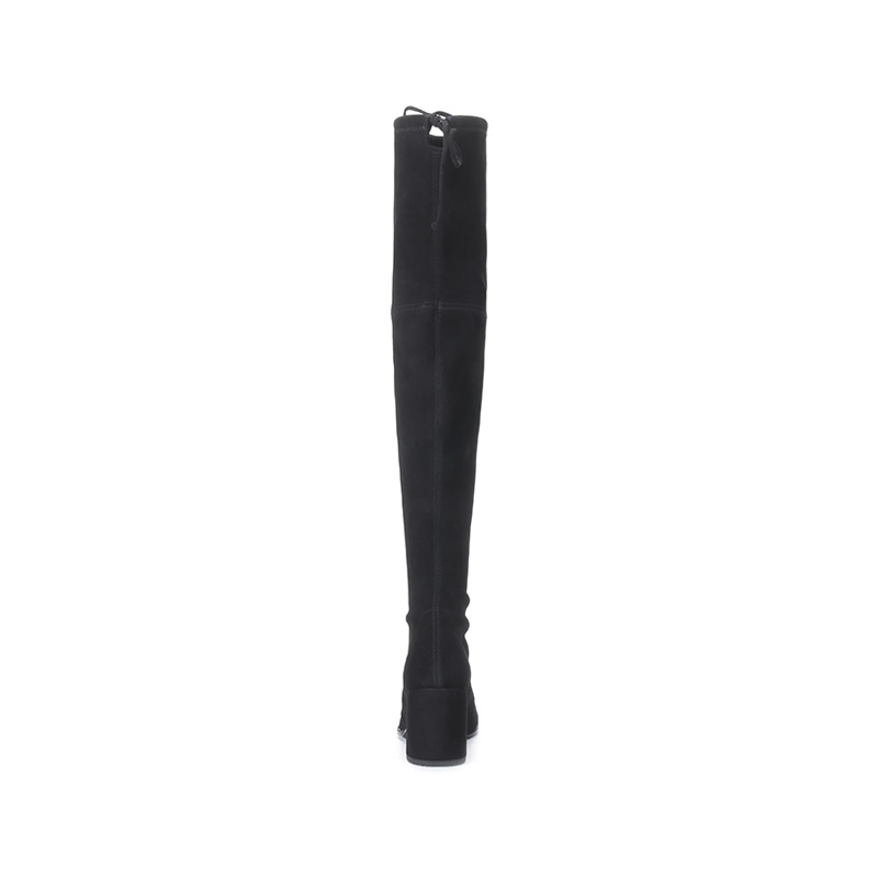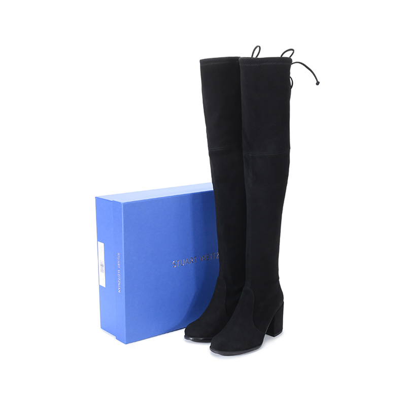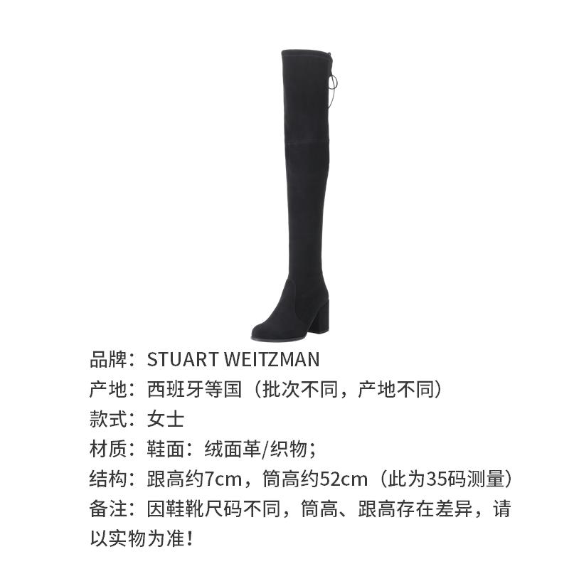 自营Stuart Weitzman 思缇韦曼 女士绒面革/织物高筒靴长靴黑色 TIELAND BLK SUS SUEDE STR 跟高7cm