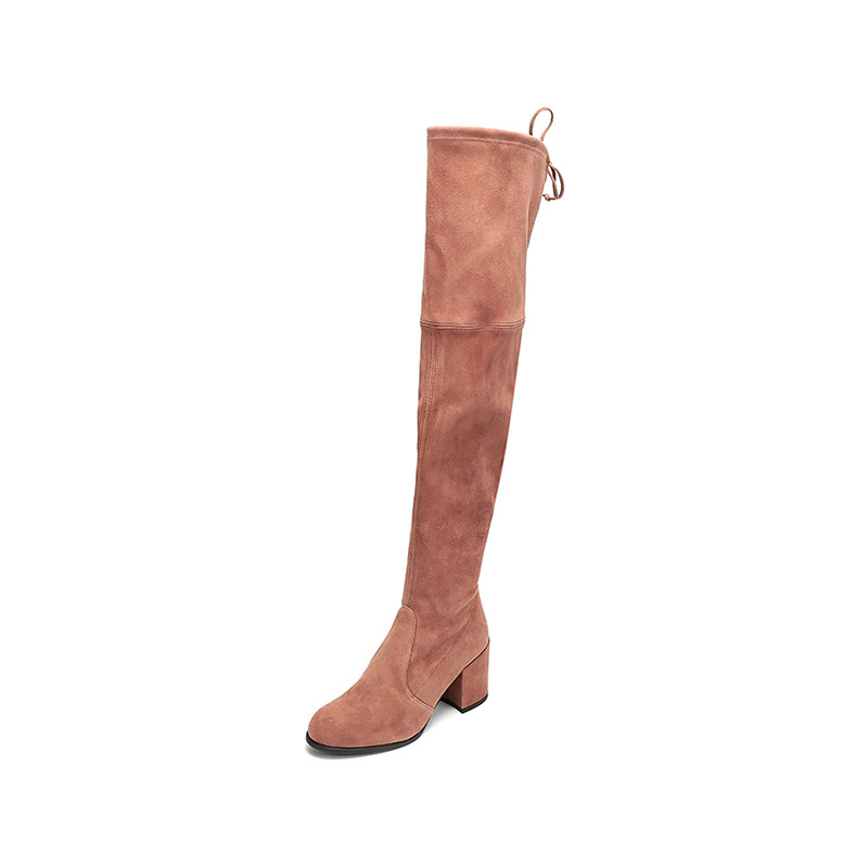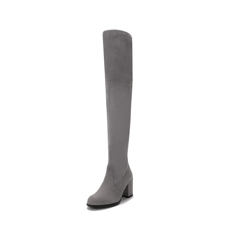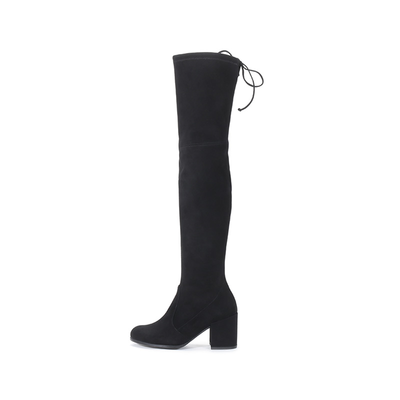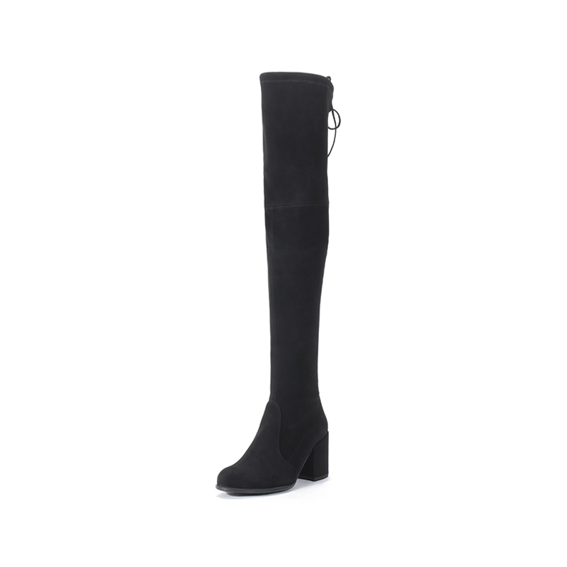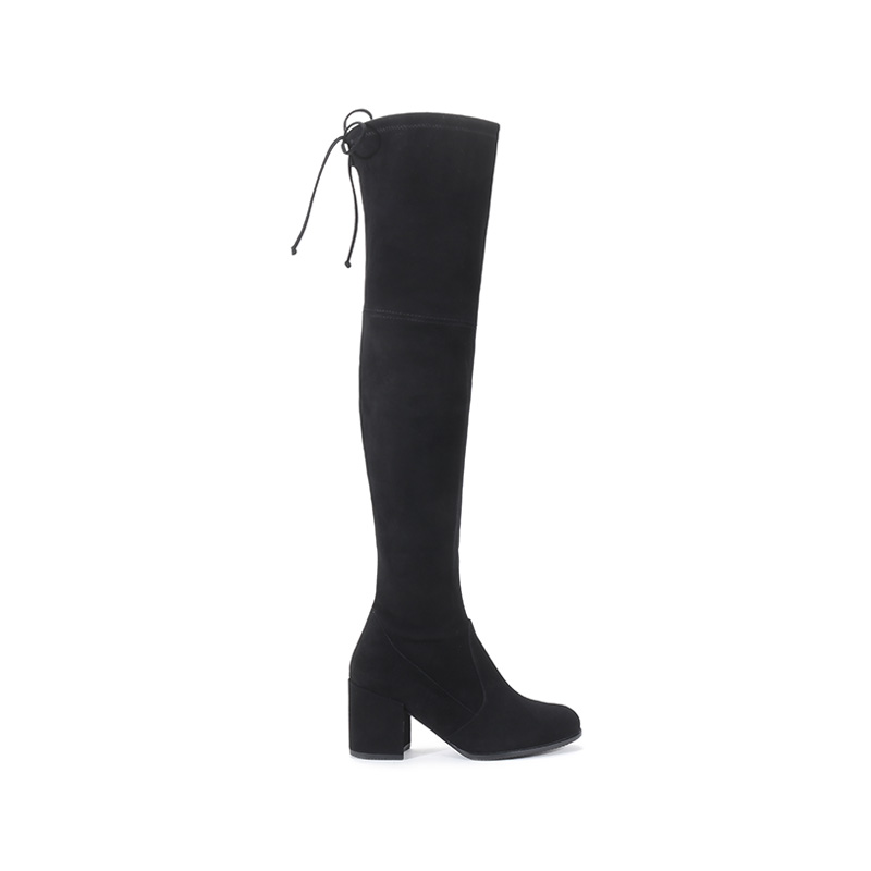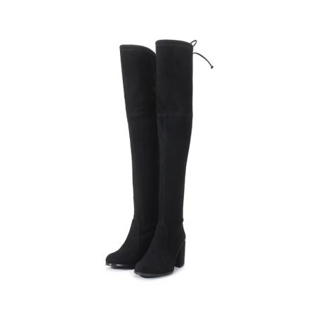 自营Stuart Weitzman 思缇韦曼 女士绒面革/织物高筒靴长靴黑色 TIELAND BLK SUS SUEDE STR 跟高7cm