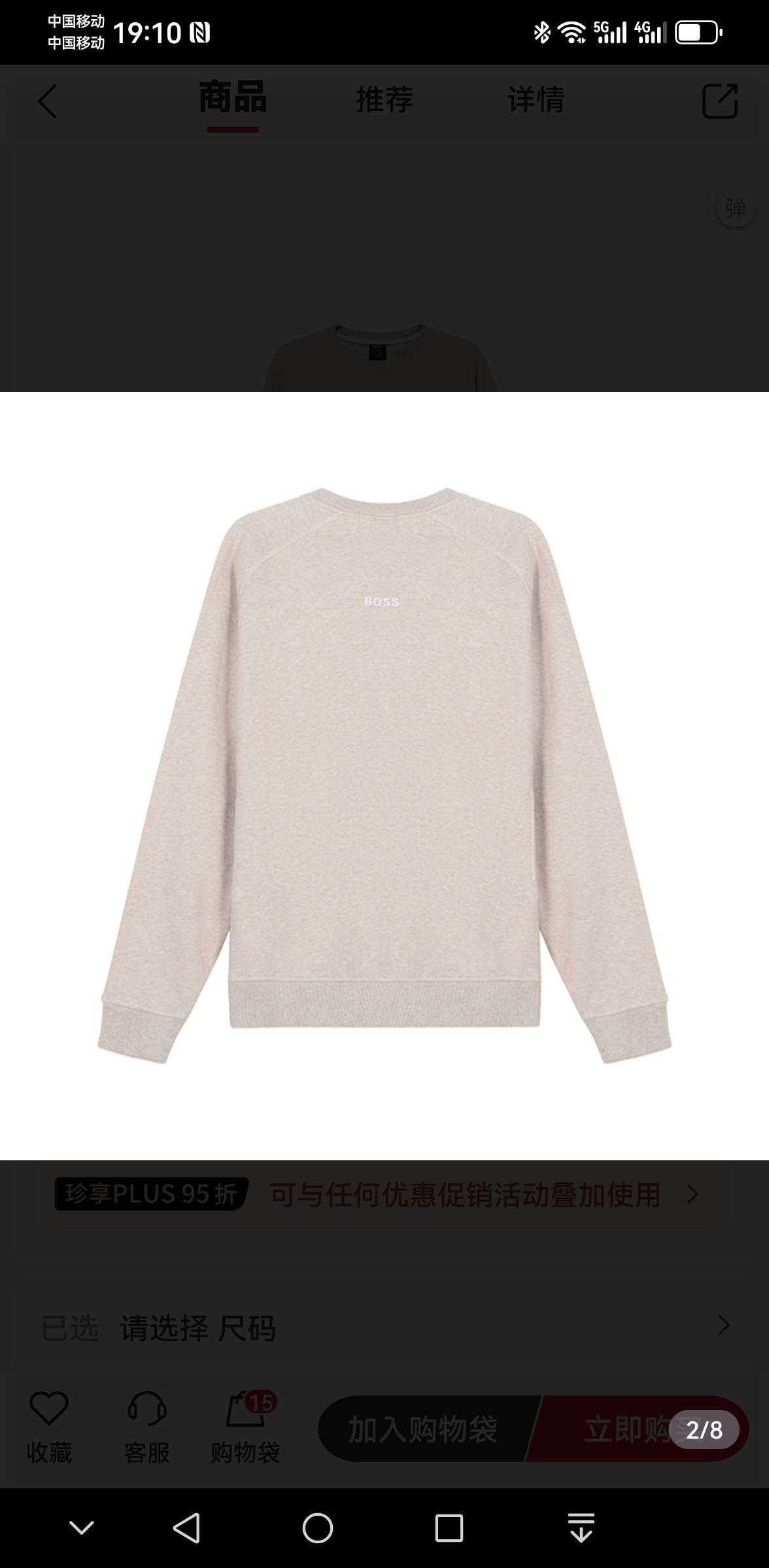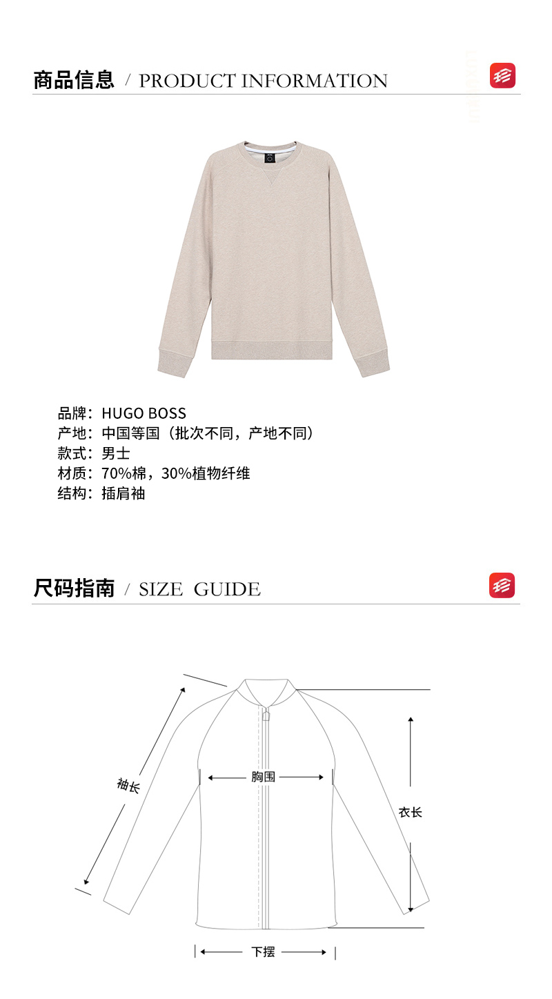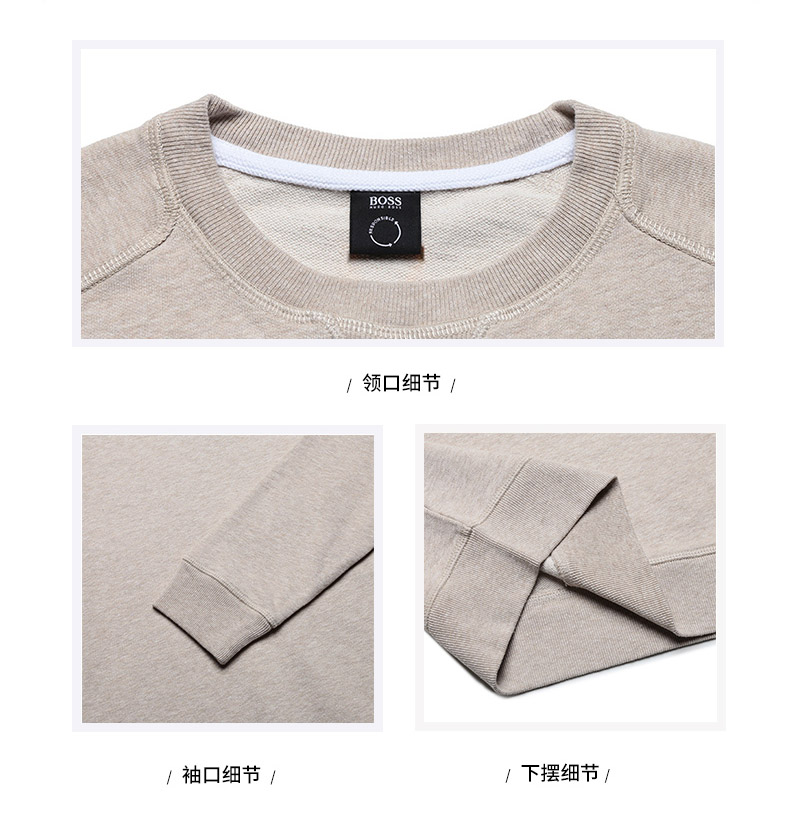 自营Hugo Boss 雨果博斯 男士棉质环保面料圆领长袖卫衣运动衫沙色 50447837 151