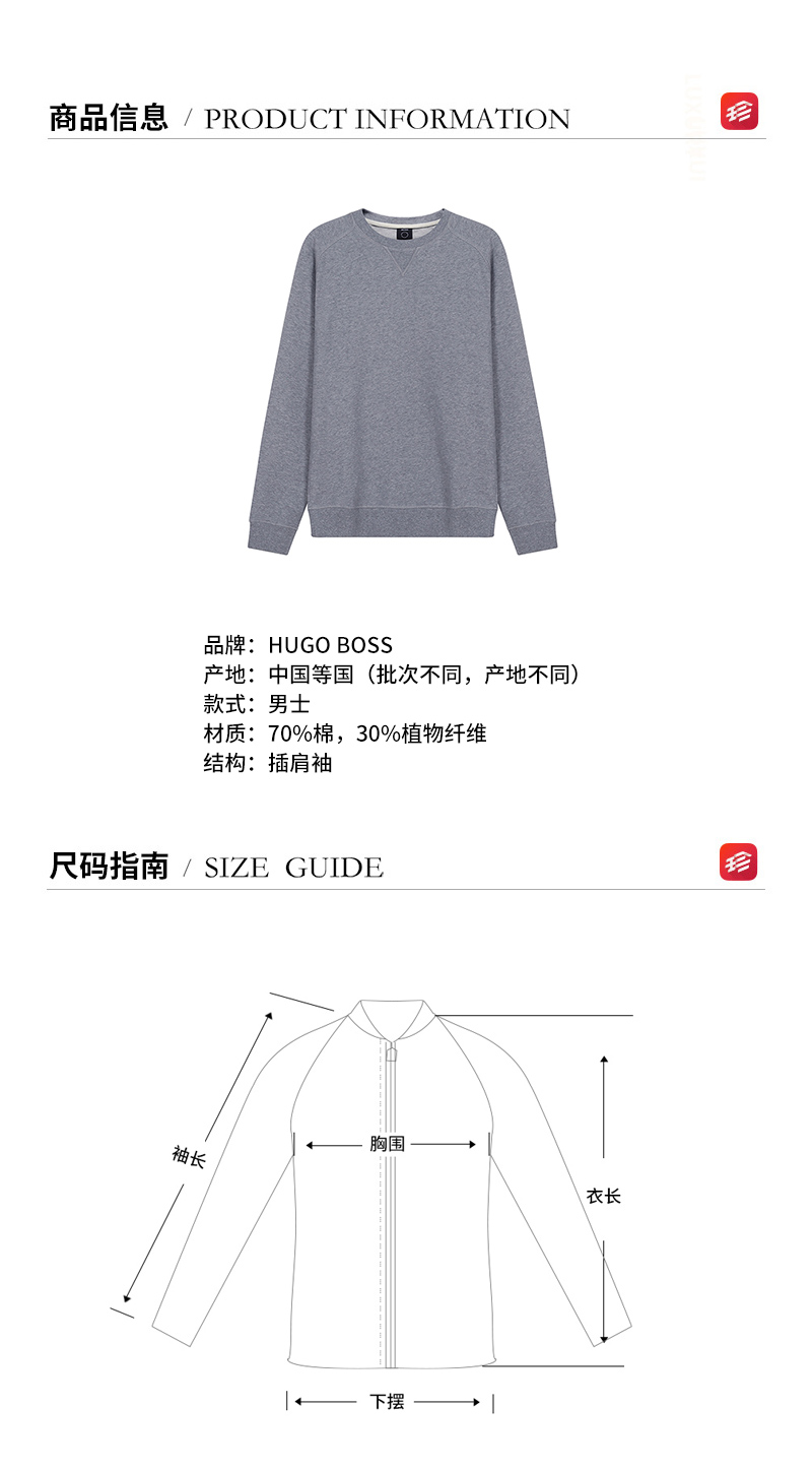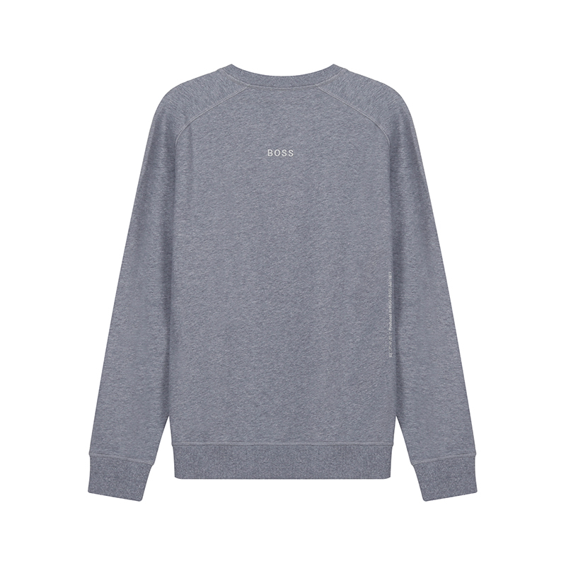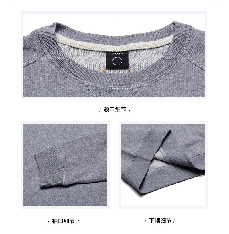 自营Hugo Boss 雨果博斯男士棉质环保面料圆领长袖卫衣运动衫中灰色 50447837 034
