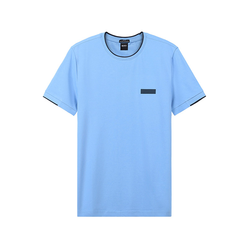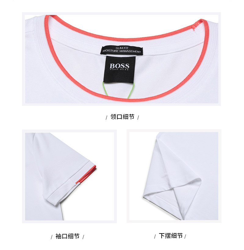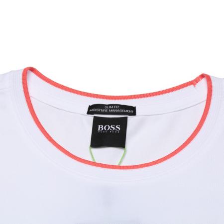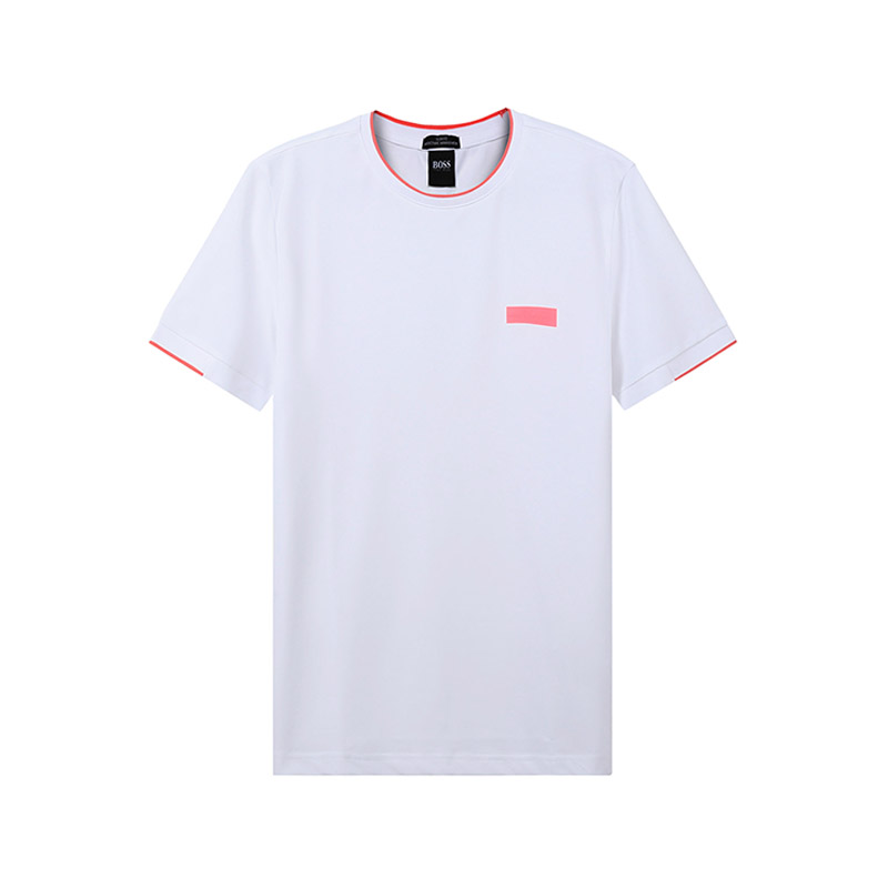 自营Hugo Boss 雨果博斯 男士棉/涤纶(再生)圆领短袖T恤白色粉色徽标 50452965 101