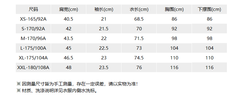 - 尺码说明
