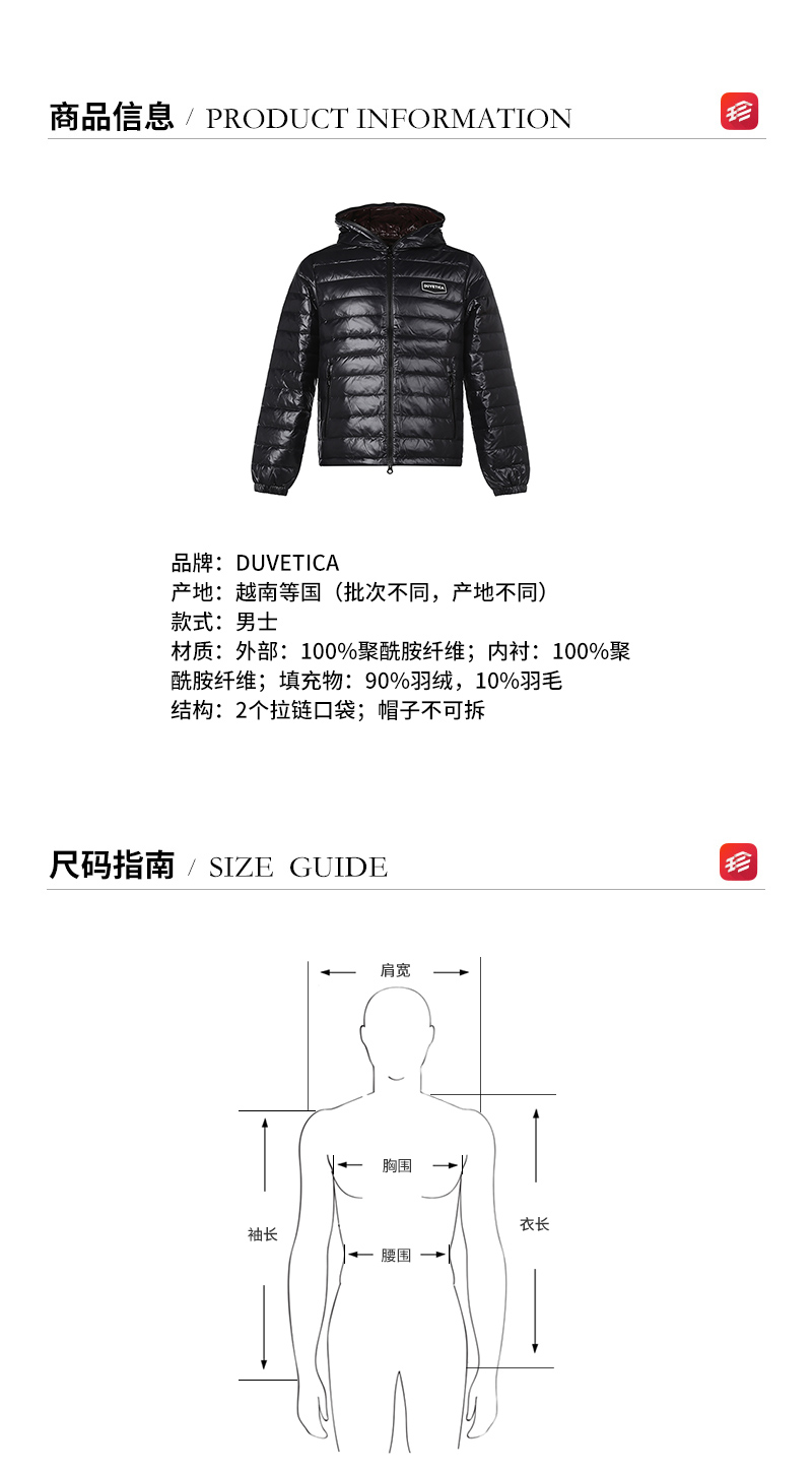 - 材质:外部:100%聚酰胺纤维;内衬:100%聚酰胺纤维;填充物:90%羽绒,10%羽毛