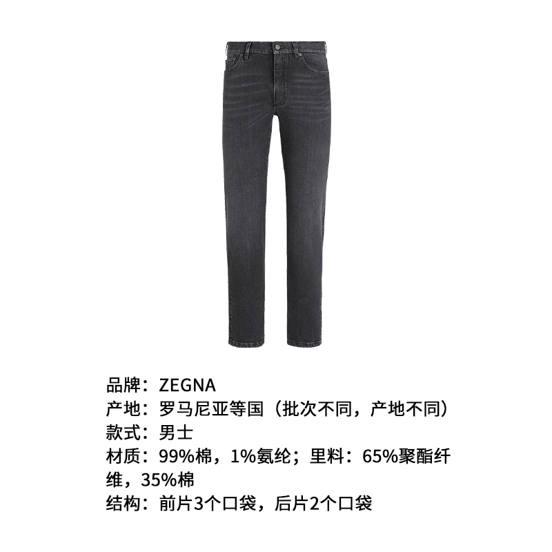 自营ZEGNA 杰尼亚 男士棉质修身版型Roccia牛仔裤长裤深灰色 E8I80 CITY 002