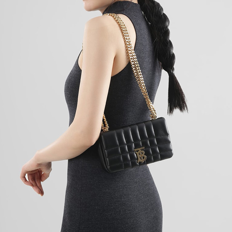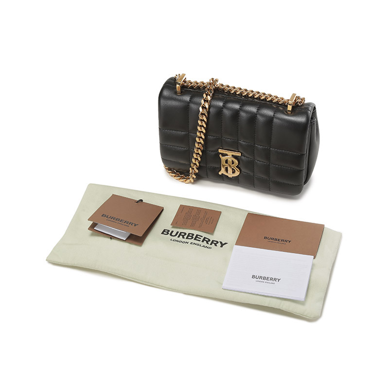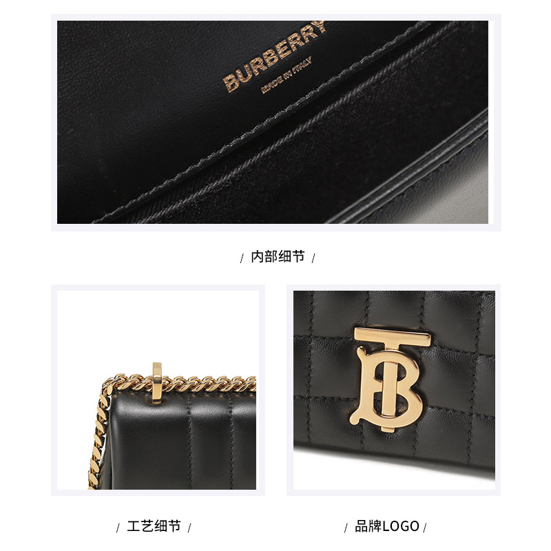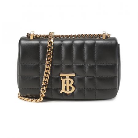 自营Burberry 博柏利女款羊皮革TB专属标识绗缝迷你Lola萝纳包手提单肩斜挎包链条包黑色 80594921
