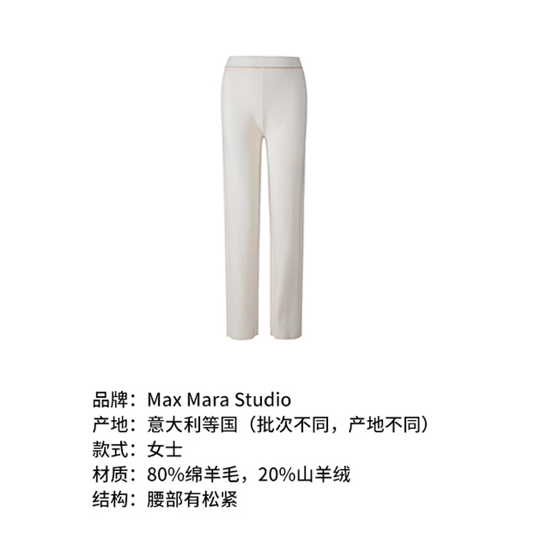 自营Max Mara Studio 麦丝玛拉女士绵羊毛针织休闲裤长裤阔腿裤米白色 63360129 SIRI 001