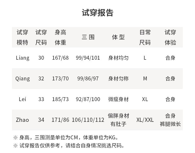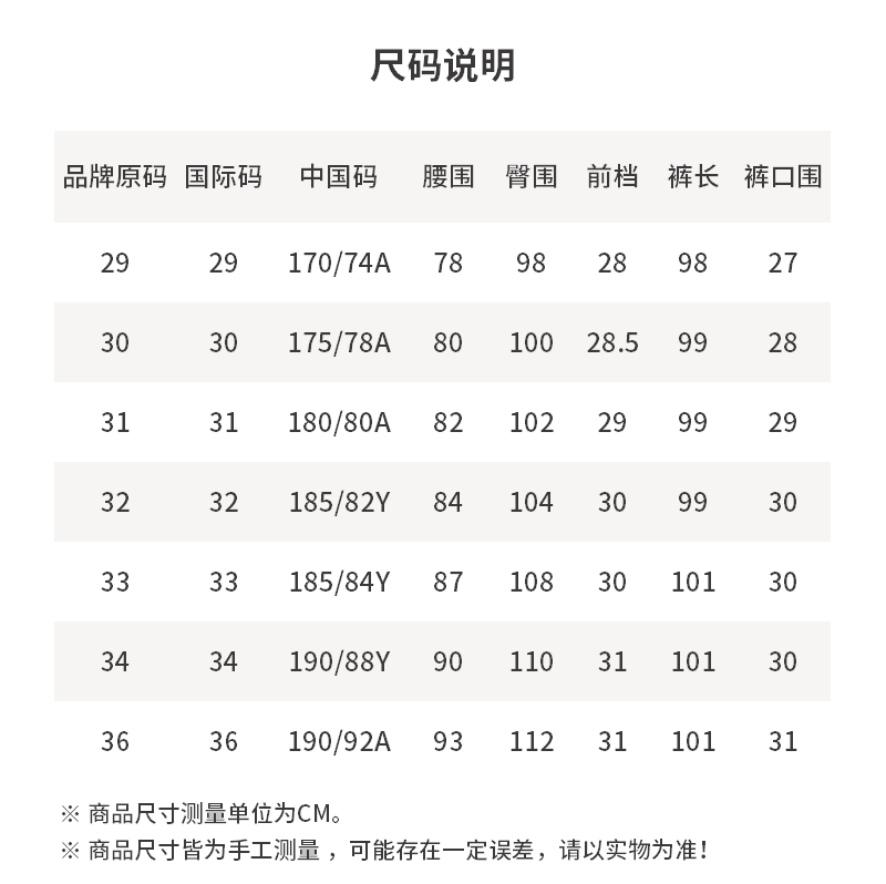- 尺码说明