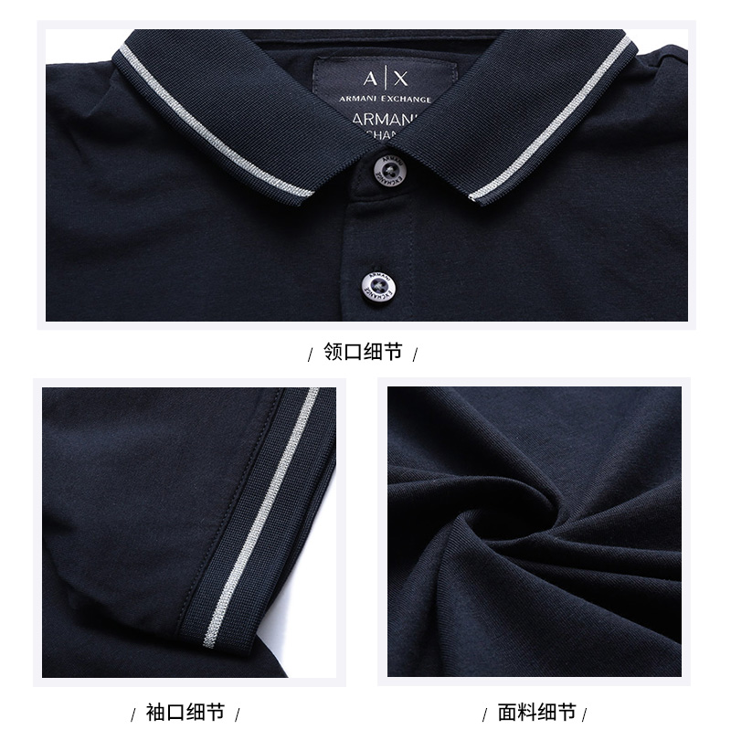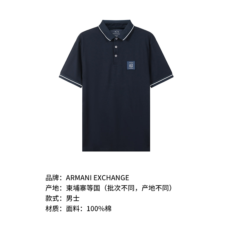 自营Armani Exchange 阿玛尼 【新品】男士海军蓝徽标装饰短袖POLO衫 8NZFPQ ZJH4Z 1510