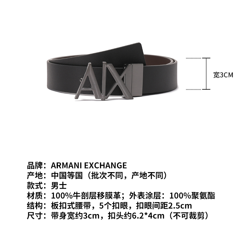 自营Armani Exchange 阿玛尼 男士AX黑色/深棕色不可裁剪双面旋转皮带腰带3cm 951017 CC505 54120