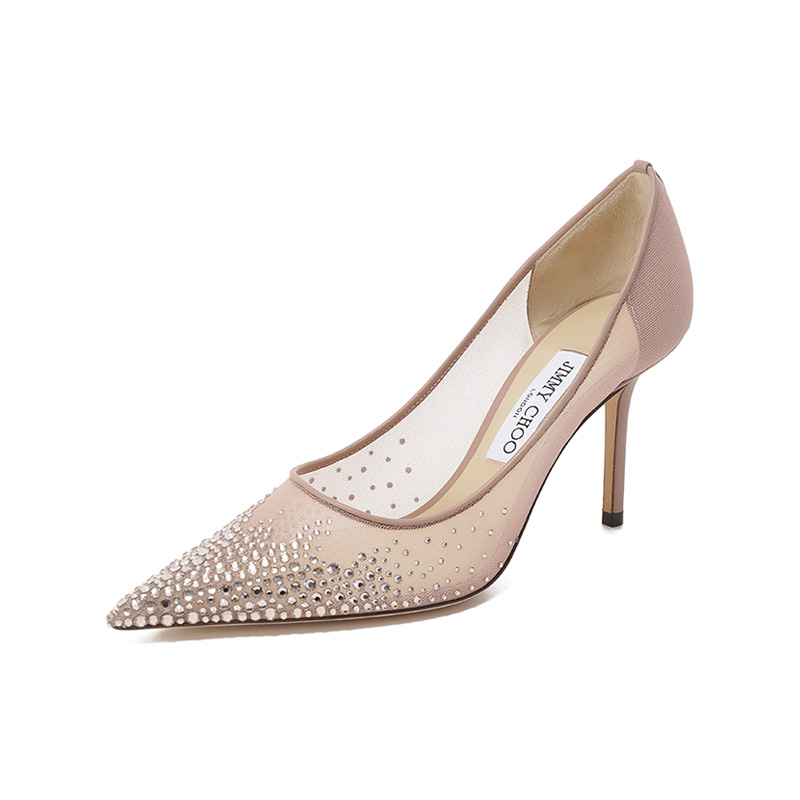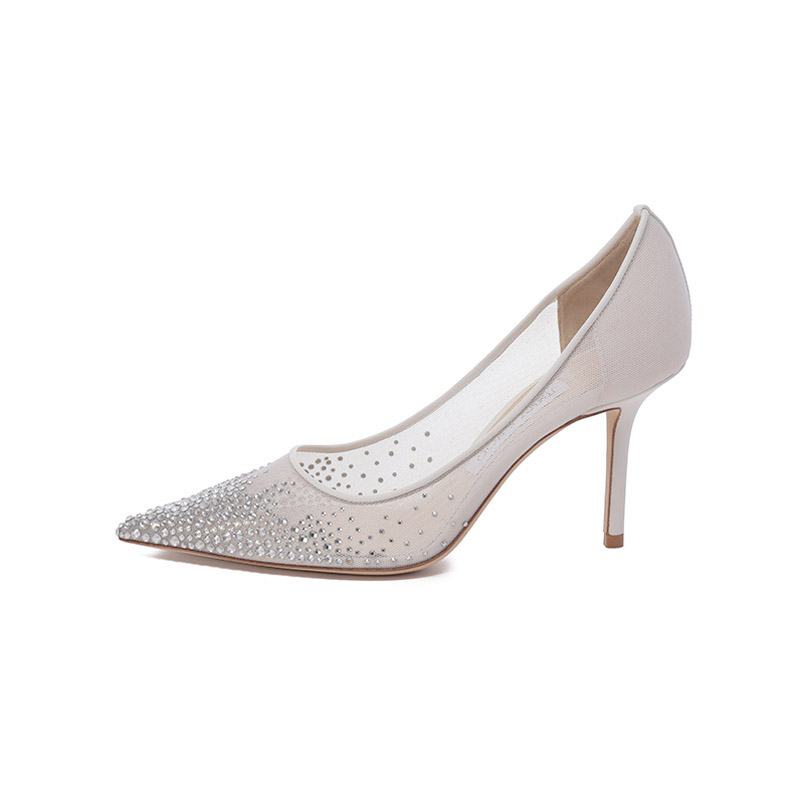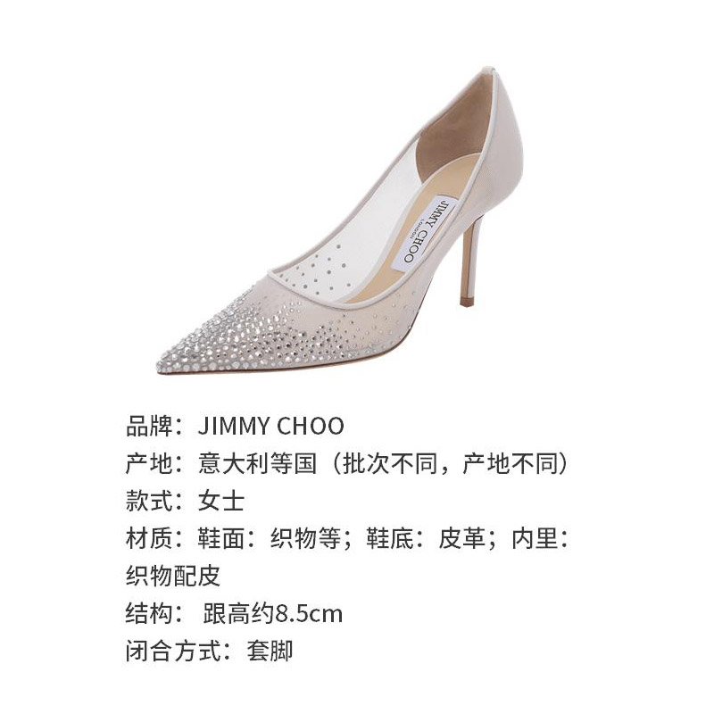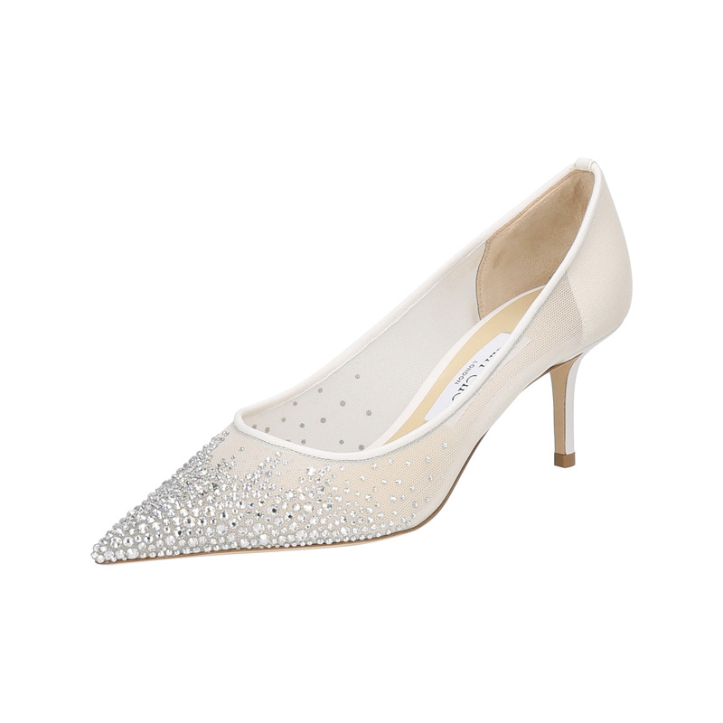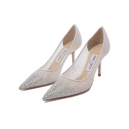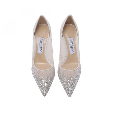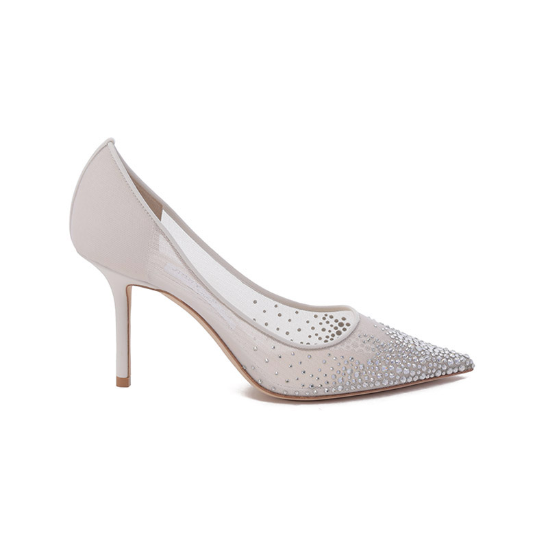 自营Jimmy Choo 周仰杰 【新品】 女士白色水晶色网眼尖头细跟高跟鞋婚鞋跟高8.5cm LOVE 85 NYT 010 WHITE CRYSTAL