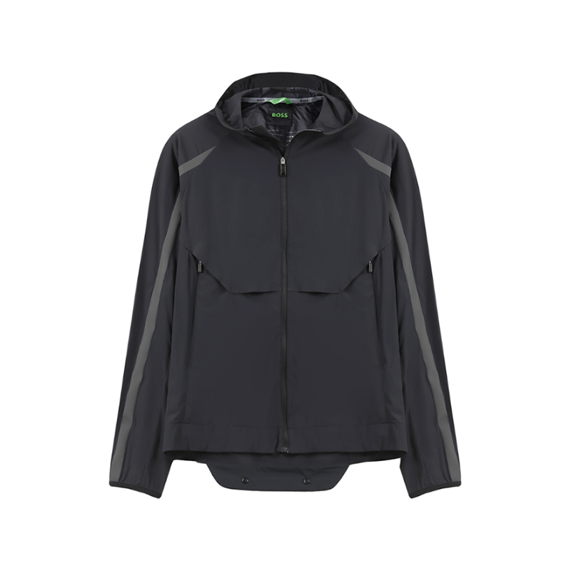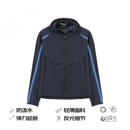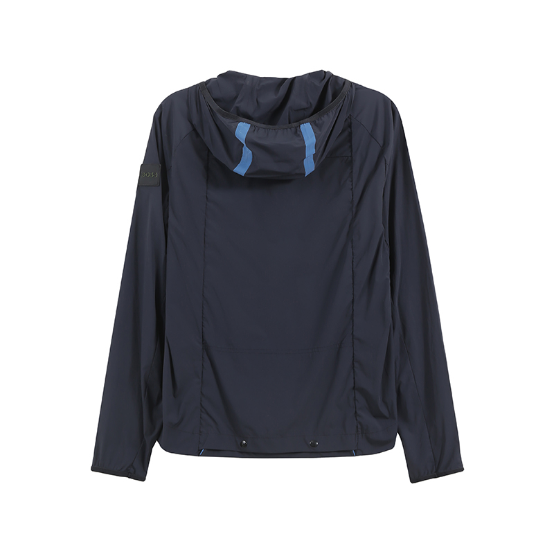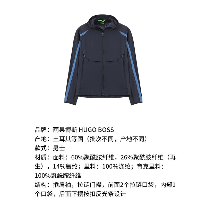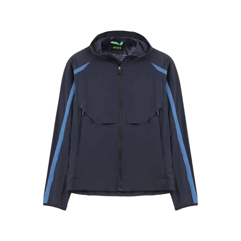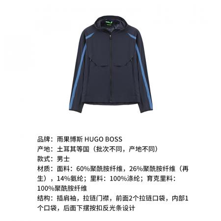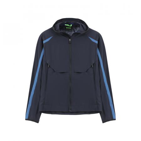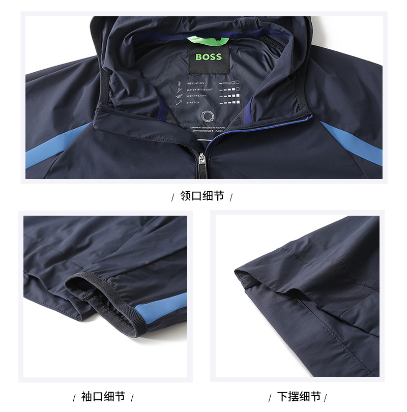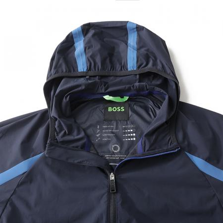 自营Hugo Boss 雨果博斯 男士green系列海军蓝色徽标贴饰环保面料户外轻薄防泼水运动休闲连帽上衣外套 50482352 402
