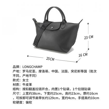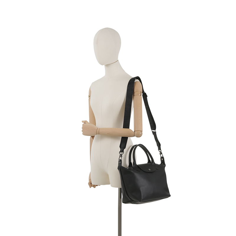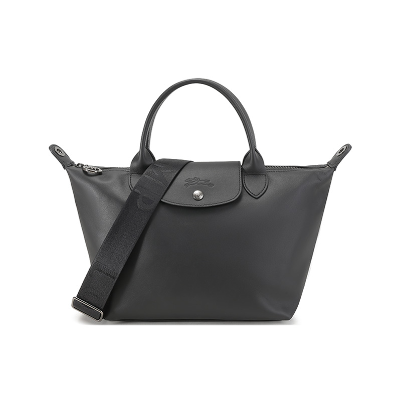 自营Longchamp 珑骧 女士Le Pliage Xtra系列小号黑色牛皮革短柄饺子包手提单肩斜挎包 1512 987 001