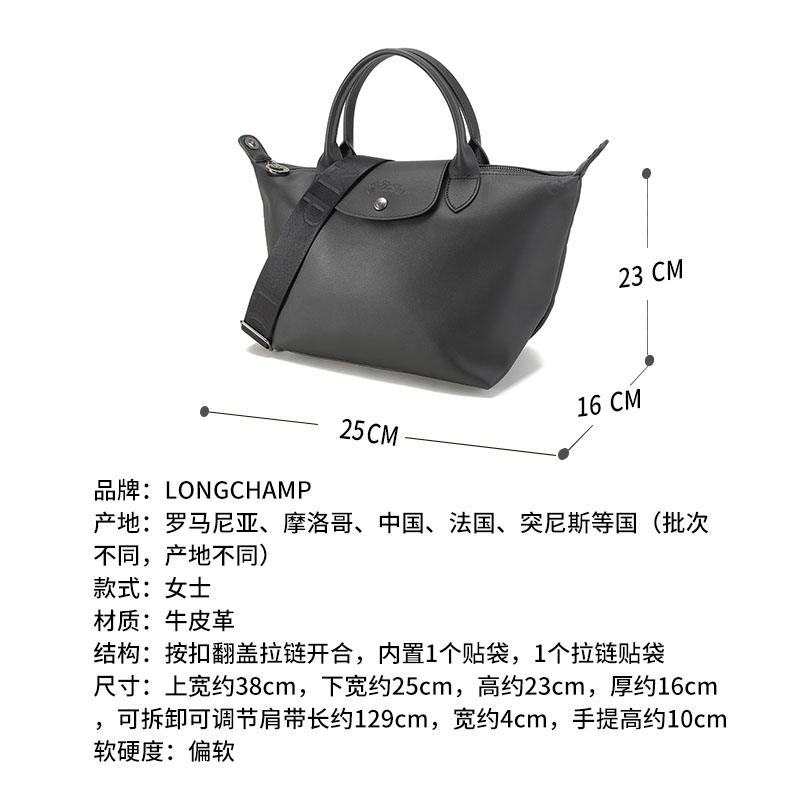 - 规格:上宽约38cm,下宽约25cm,高约23cm,厚约16cm,可拆卸可调节肩带长约129cm,宽约4cm,手提高约10cm