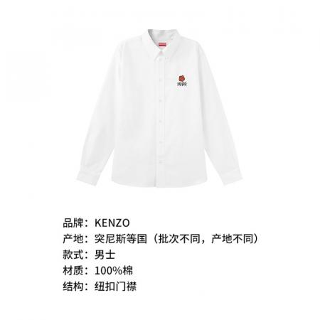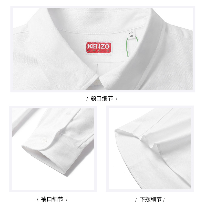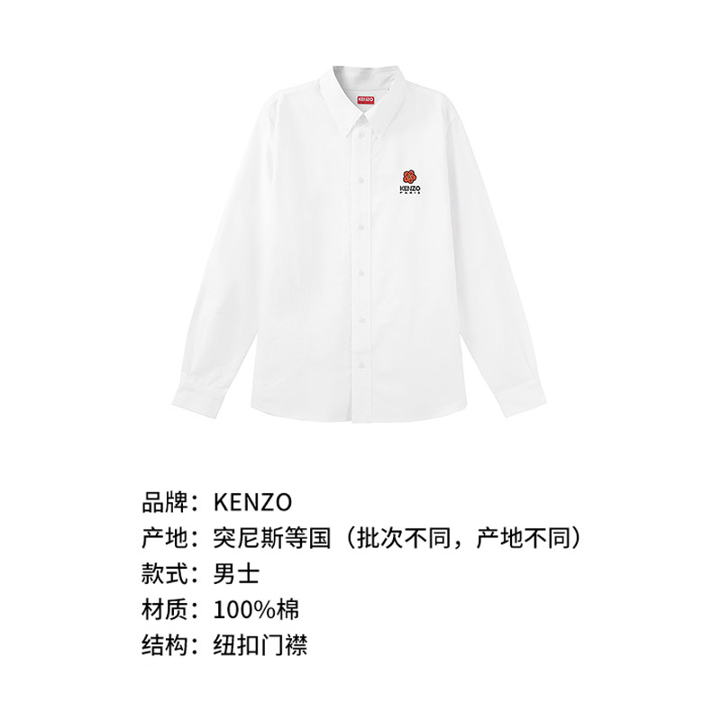 自营Kenzo 高田贤三 男士BOKE系列棉质白色海棠花LOGO刺绣休闲长袖衬衫外套 FD5 5CH410 9LO 01