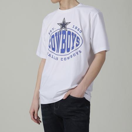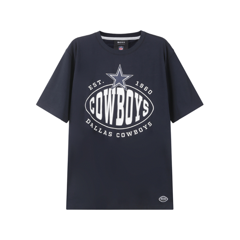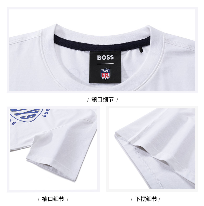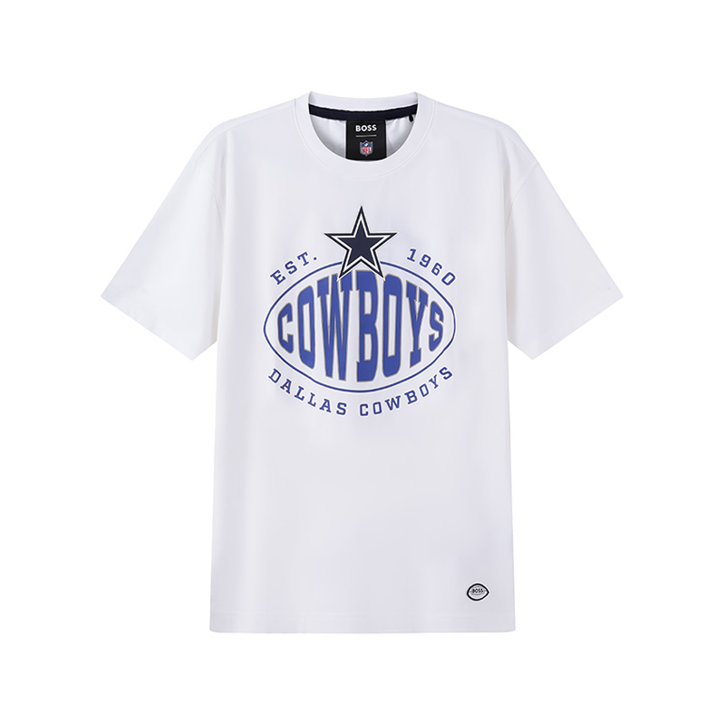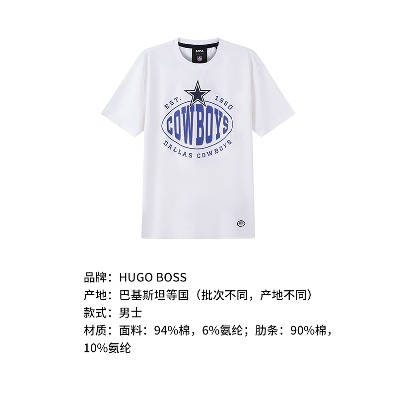 自营Hugo Boss 雨果博斯 男士BOSS x NFL联名胶囊系列棉质白色达拉斯牛仔队胶印圆领短袖T恤 50504526 100