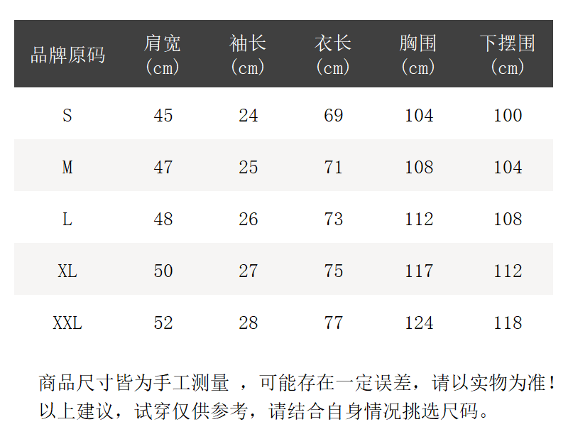 尺码说明