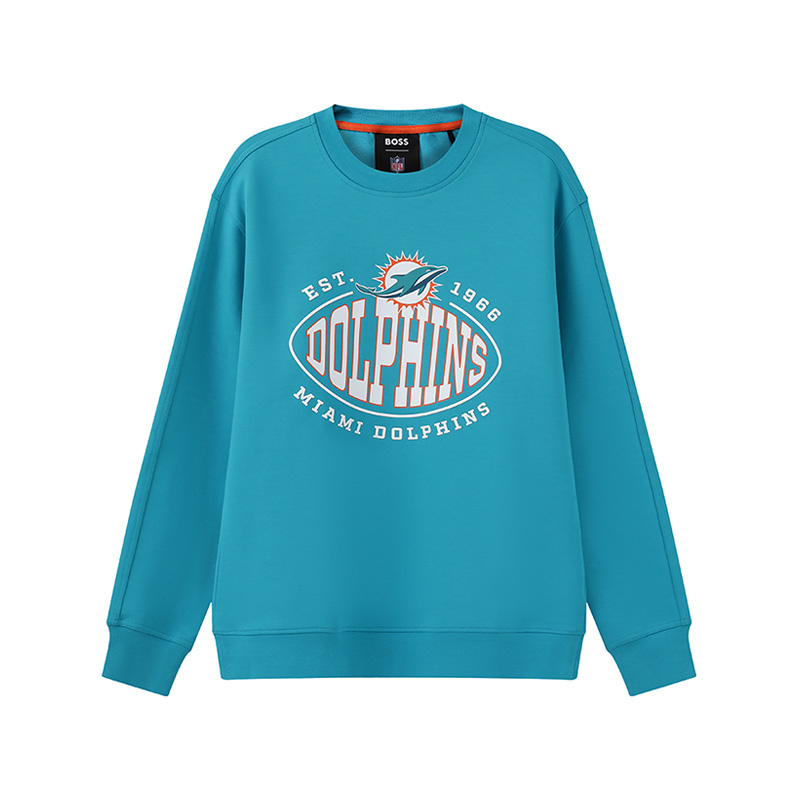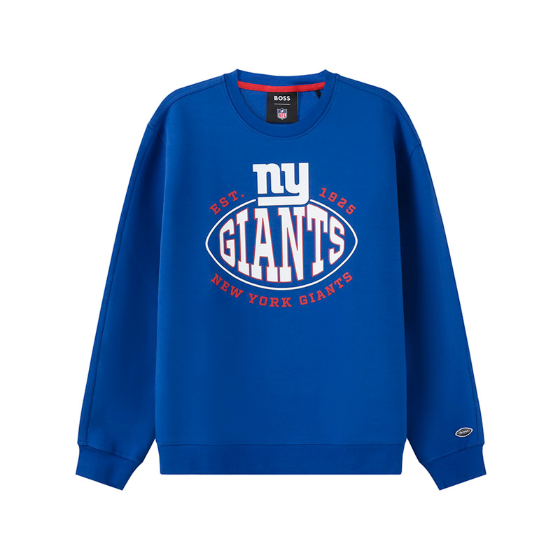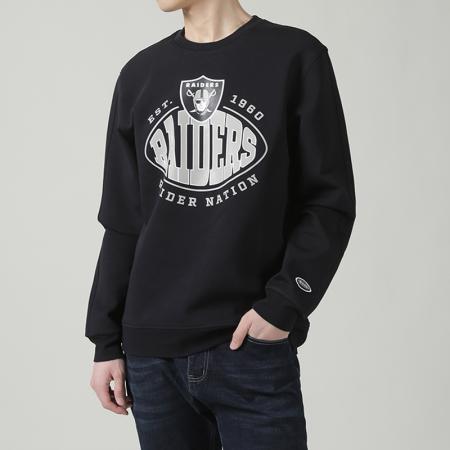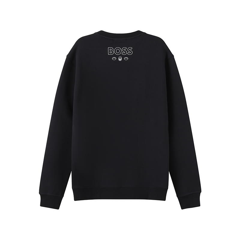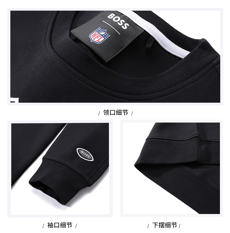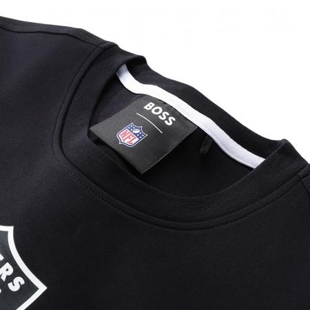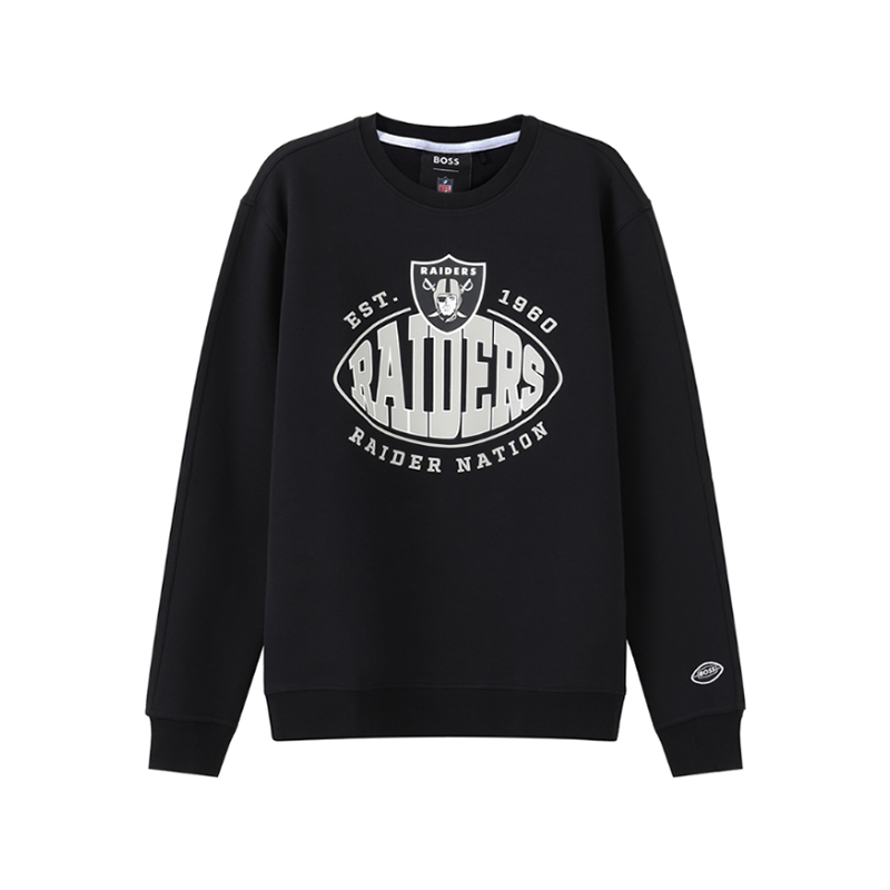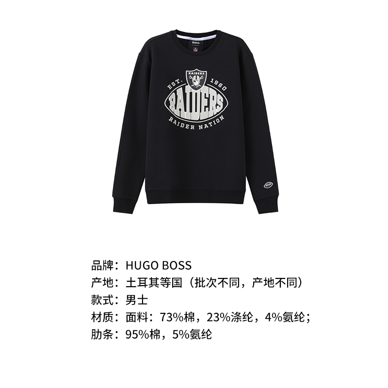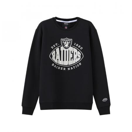 自营Hugo Boss 雨果博斯 男士BOSS x NFL联名胶囊系列棉质黑色拉斯维加斯突袭者队胶印圆领长袖卫衣运动衫 50504600 004
