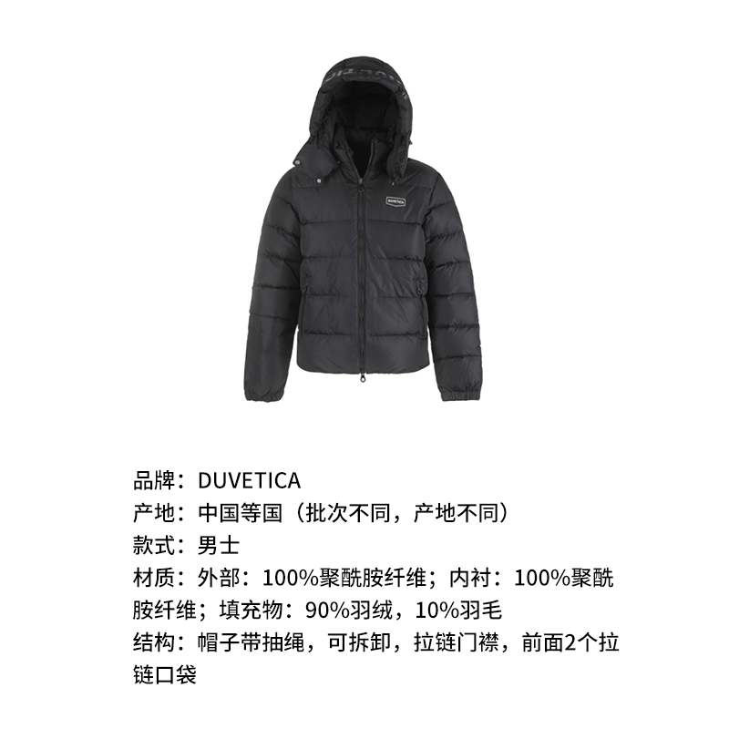 - 材质:外部:100%聚酰胺纤维;内衬:100%聚酰胺纤维;填充物:90%羽绒,10%羽毛