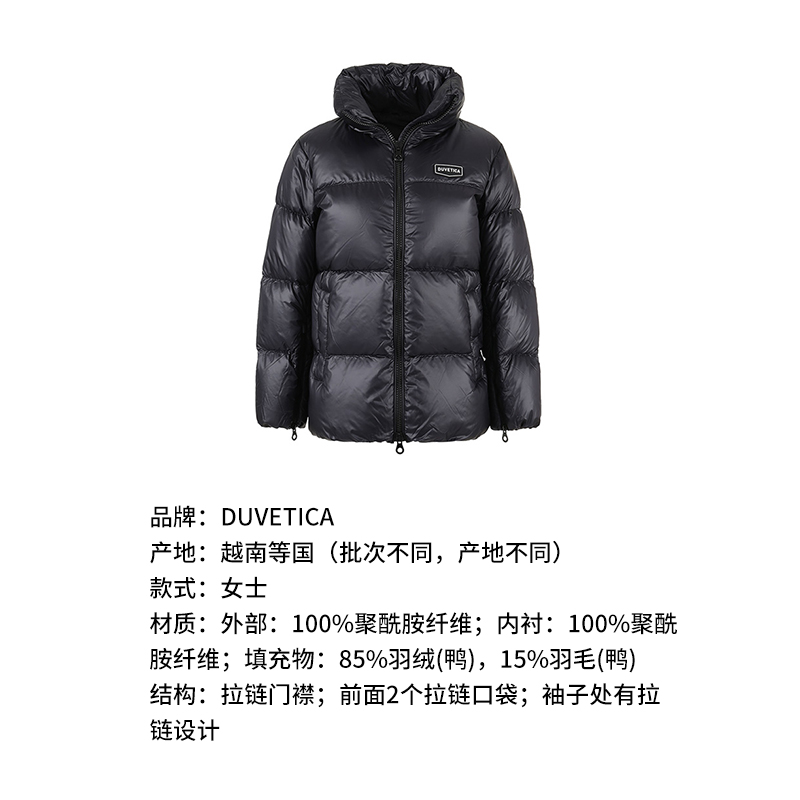 Duvetica为意大利品牌,主要生产高质量的羽绒夹克。其原本为各大时尚品的下游代工厂,经过数十年经验的积累,于2002年创立自有品牌。它的衣服采用了法国南部Perigord所养殖鸭与鹅的天然羽绒,含绒量达到90%,呈现出来的特色就是质轻、保暖且舒适。加上设计团队独家研发的亮面材质,以及对高品质的追求和独特的设计风格,引发了欧洲和日本潮流人士的热捧。