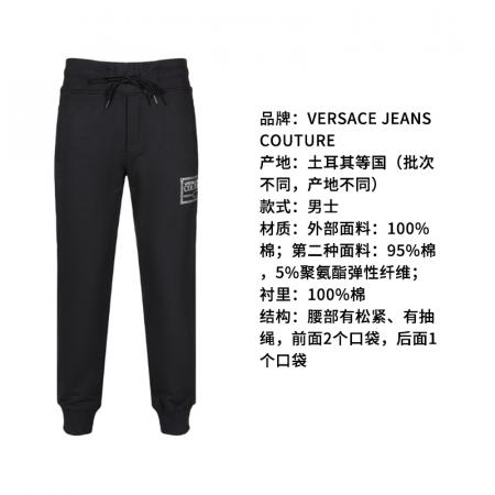 自营Versace Jeans Couture 范思哲 【新品】男士棉质黑色徽标印花卫裤运动休闲裤长裤 75GAAT12 CF06T S89