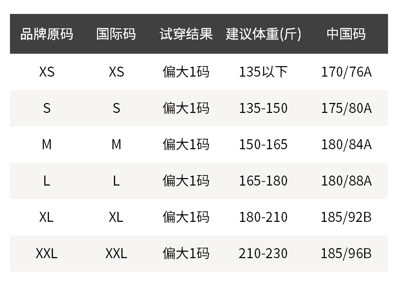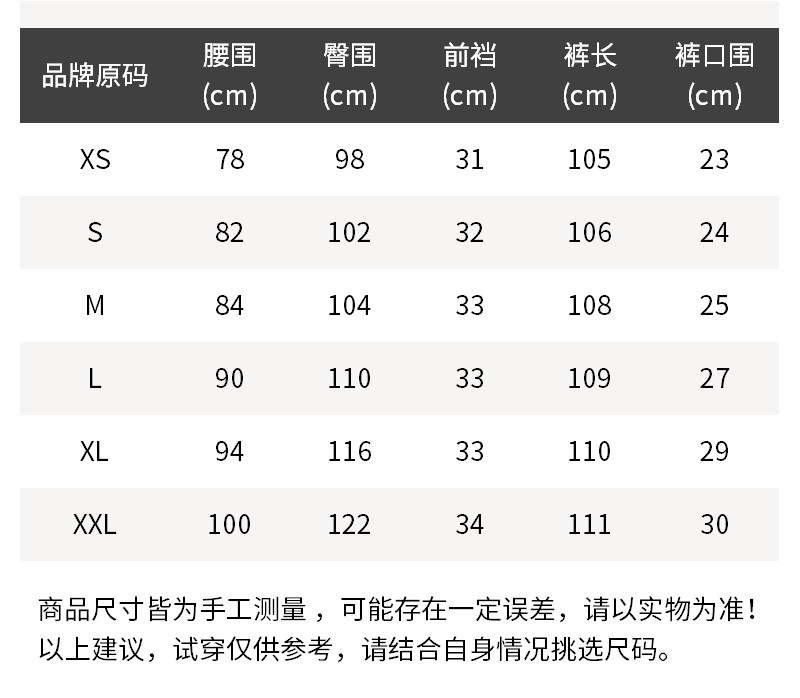 - 尺码说明