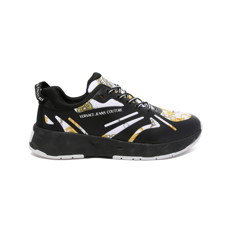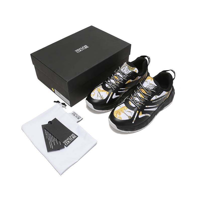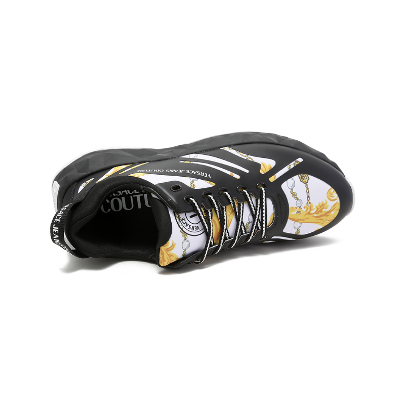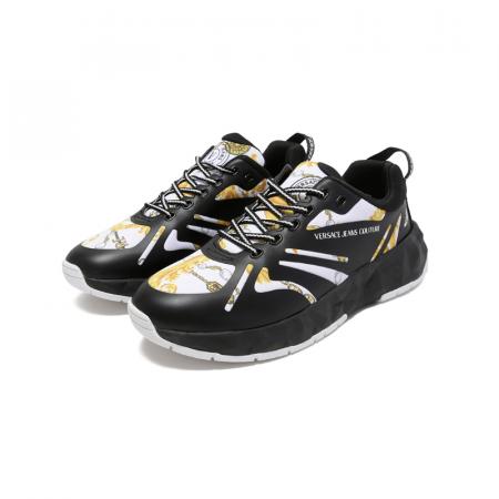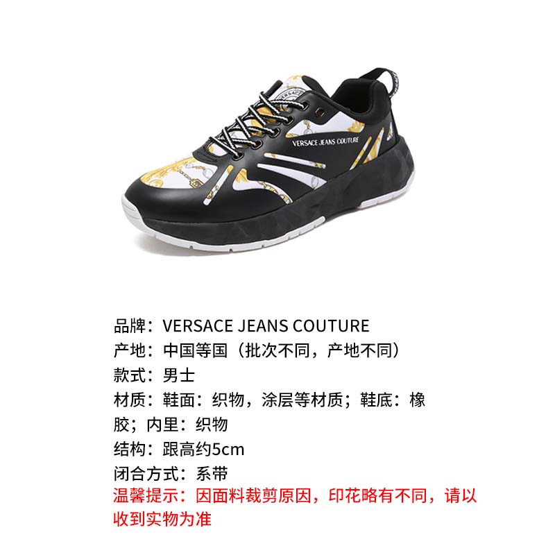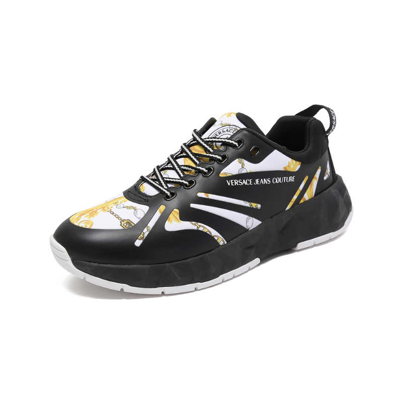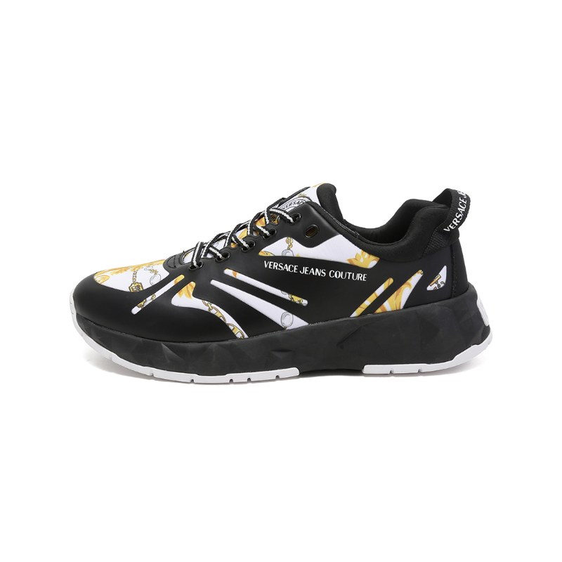 自营Versace Jeans Couture 范思哲 【新品】男士黑色白色印花厚底系带休闲运动鞋 75YA3SB2 ZS874 M09