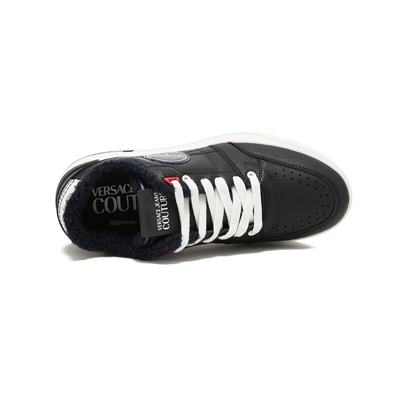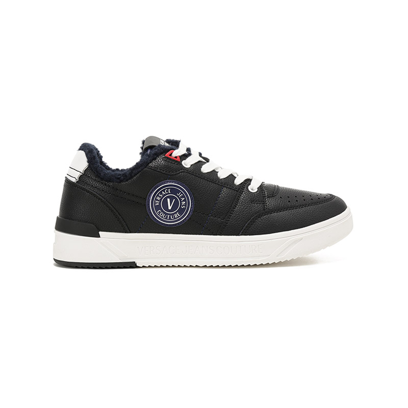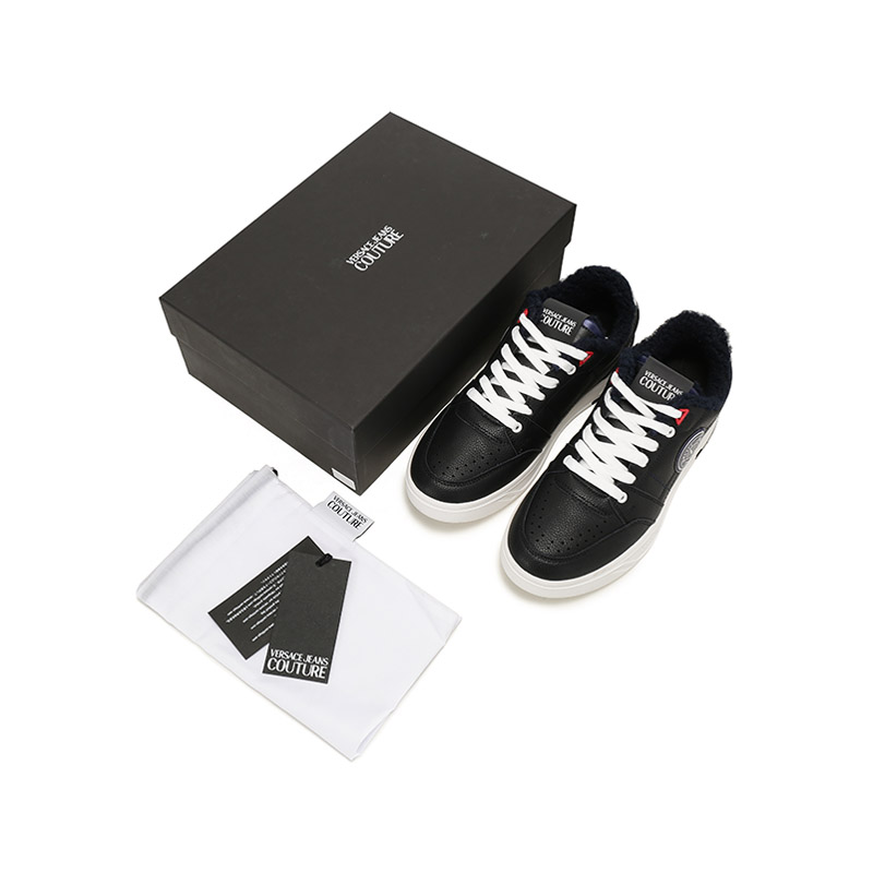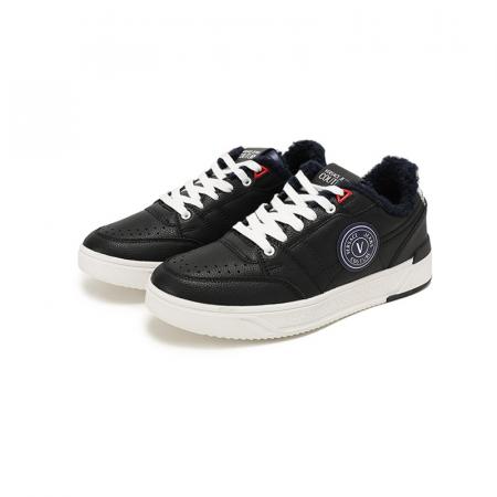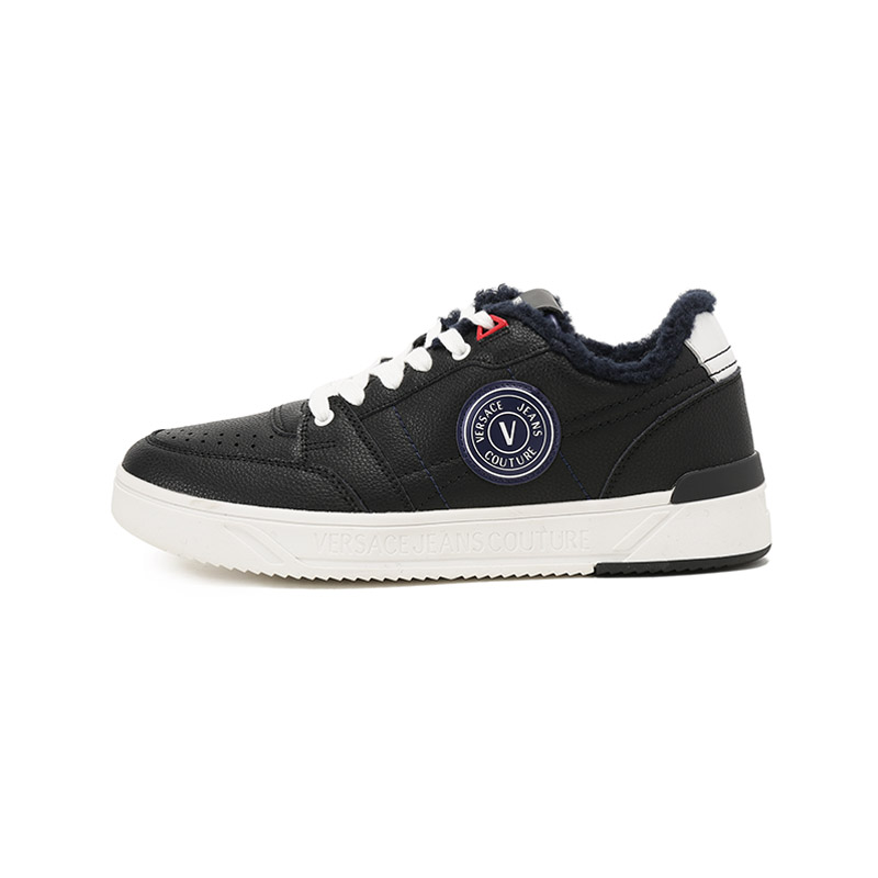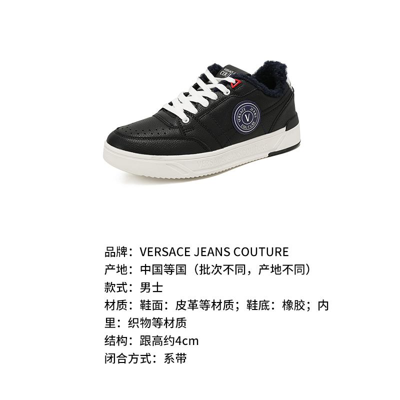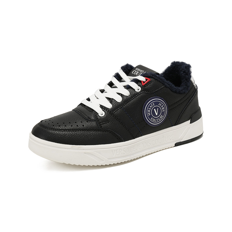 自营Versace Jeans Couture 范思哲 男士黑色蓝色V字徽章装饰加绒板鞋厚底系带休闲运动鞋 75YA3SJA ZP355 899