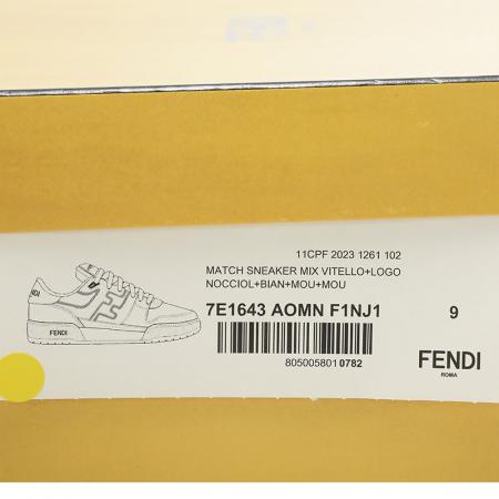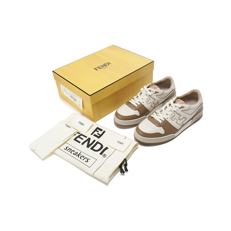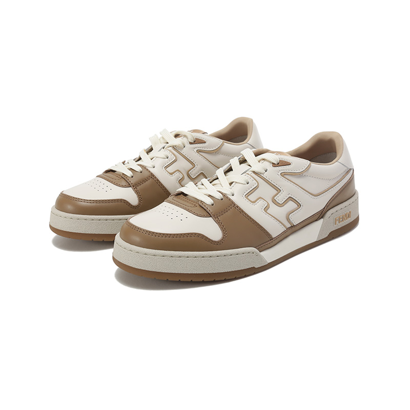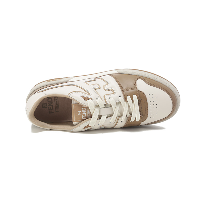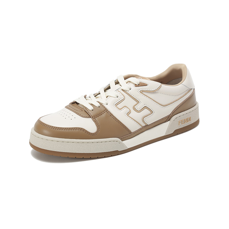 自营Fendi 芬迪 【新品】男士牛皮革棕色米色FF图案Match低帮厚底系带板鞋休闲运动鞋 7E1643 AOMN F1NJ1