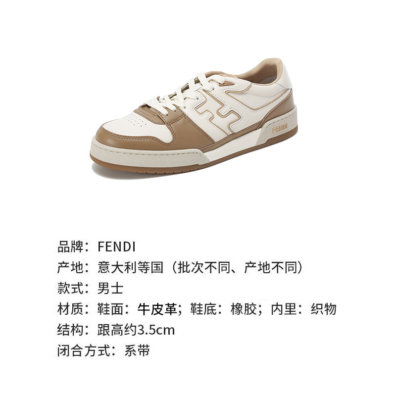 - FENDI Match系带运动鞋。皮革材质,饰以皮革细节。橡胶鞋底,侧面带FENDI字样。