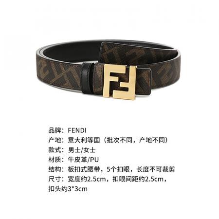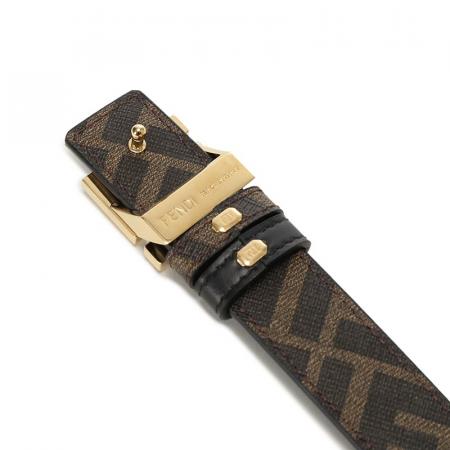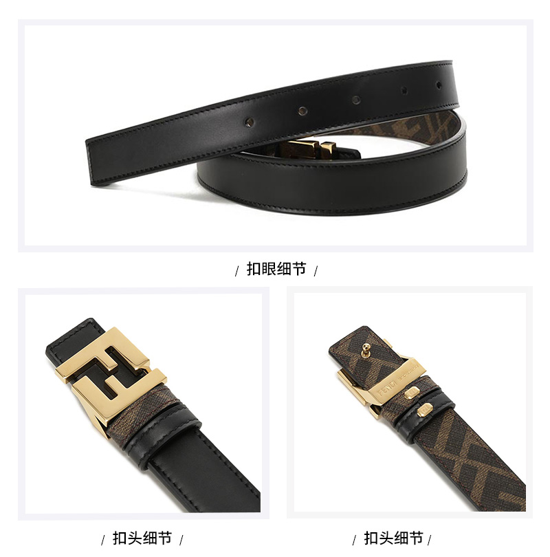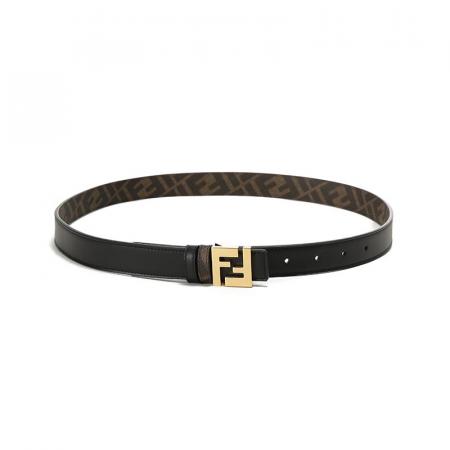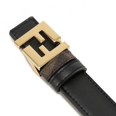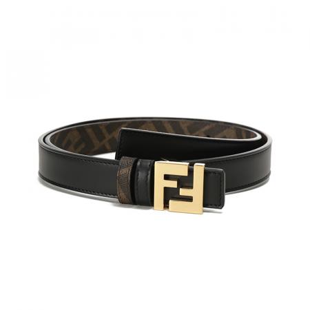 自营Fendi 芬迪 新品 男士/女士黑色/棕色FF老花FF Squared不可裁剪窄版双面皮带腰带2.5cm 7C0511 AFF2 F1A94