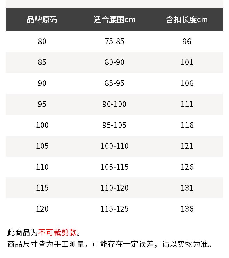 - 结构:板扣式腰带,5个扣眼,长度不可裁剪