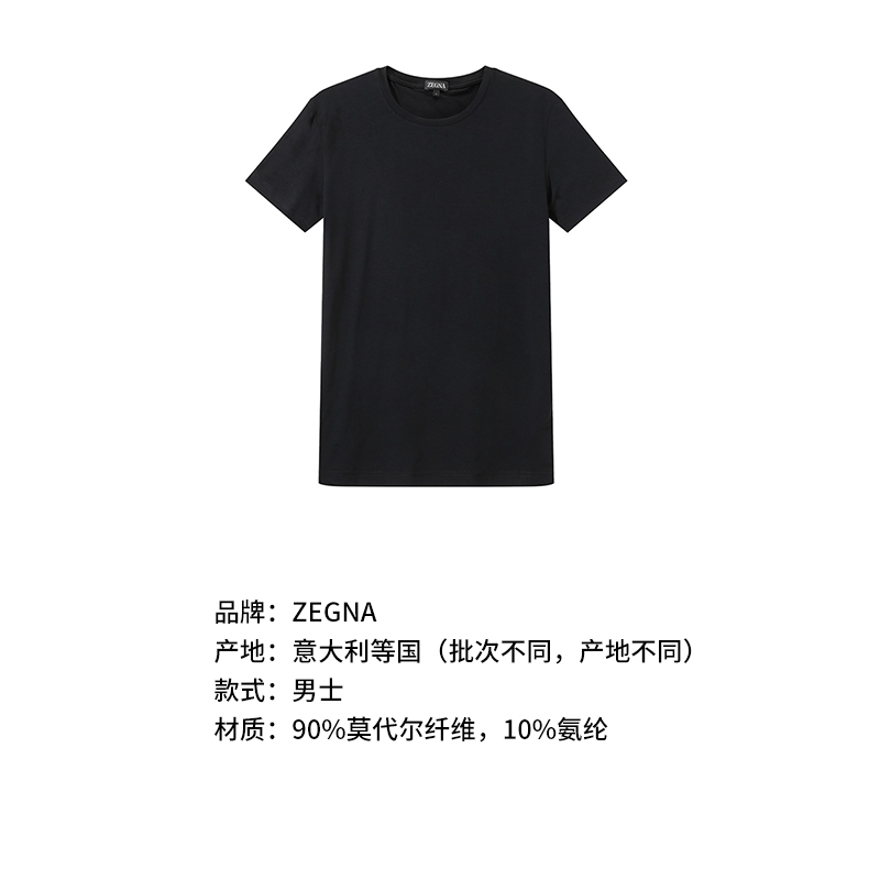 自营ZEGNA 杰尼亚 【新品】 男士莫代尔纤维黑色修身弹力圆领短袖贴身打底衫内衣T恤 N2M200100 001