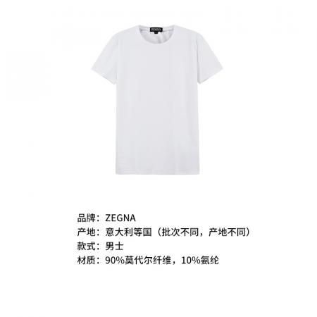 自营ZEGNA 杰尼亚【新品】 男士莫代尔纤维白色修身弹力圆领短袖贴身打底衫内衣T恤 N2M200100 100