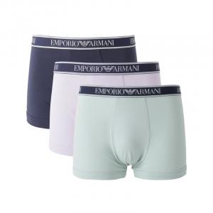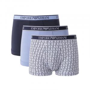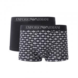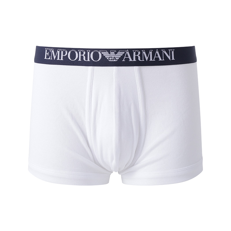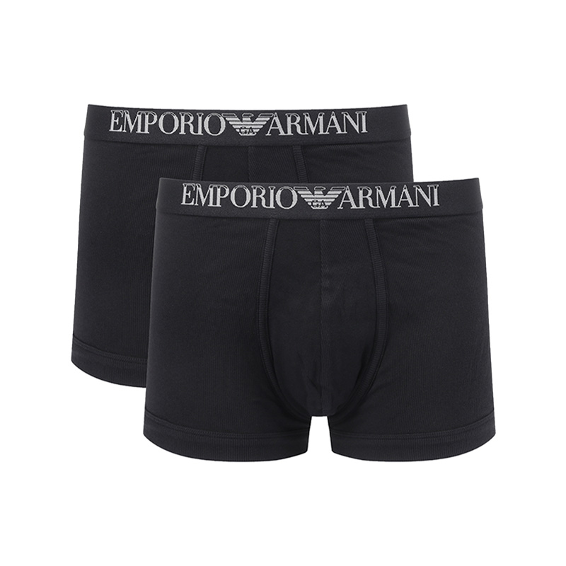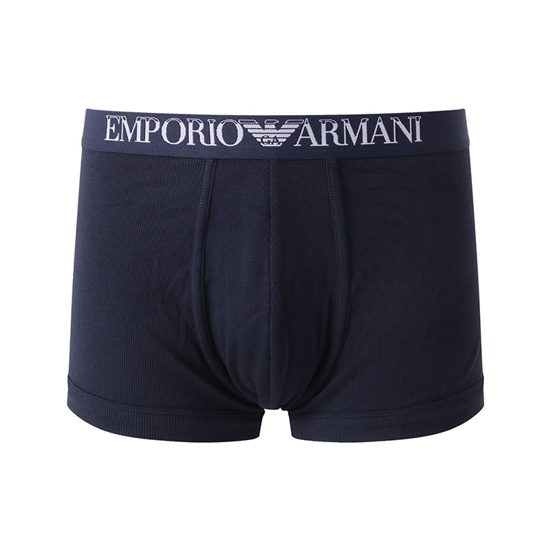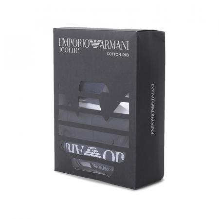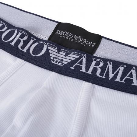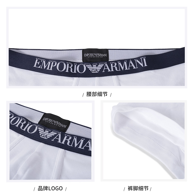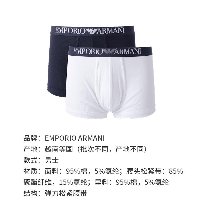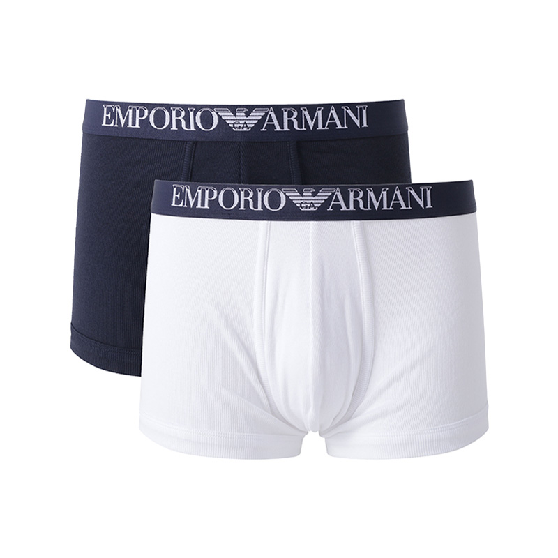 自营Emporio Armani 阿玛尼 【新品】男士棉质海军蓝/白色徽标提花弹力合身松紧腰平角内裤两条装套装 112023 4R502 17135