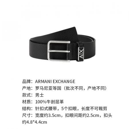自营Armani Exchange 阿玛尼 【新品】男士黑色不可裁剪窄版皮带腰带2.5cm 951396 4R852 00020