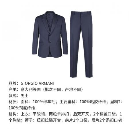 自营Giorgio Armani 阿玛尼 男士深海军蓝色平驳领两粒单排扣休闲商务西装西裤直筒长裤西服套装 GM000007 TE10047 UB109