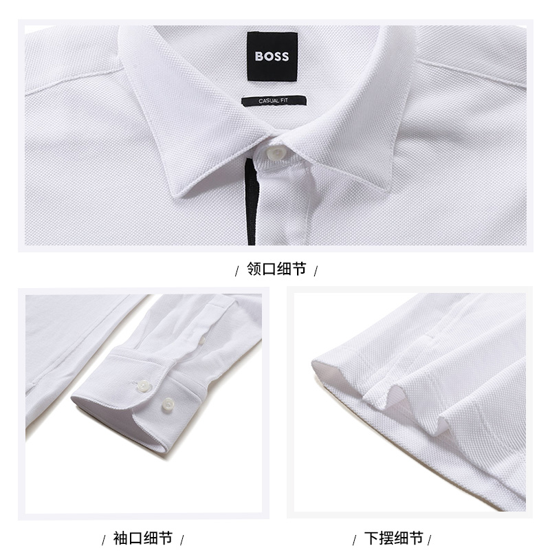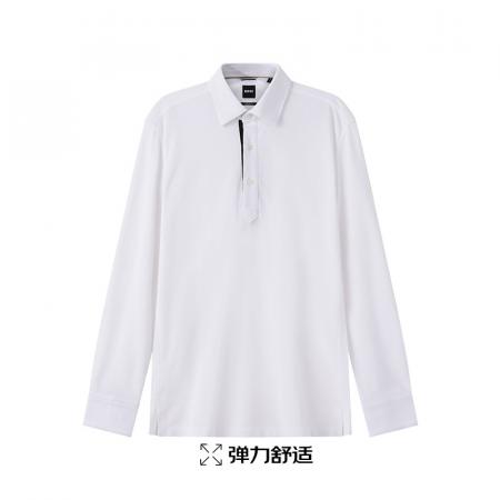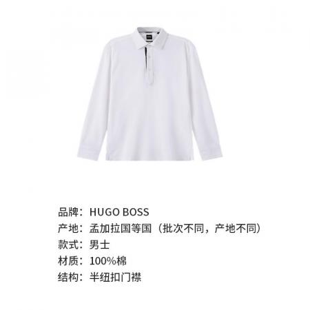 自营Hugo Boss 雨果博斯 男士black系列棉质白色休闲长袖POLO衫 50508916 100