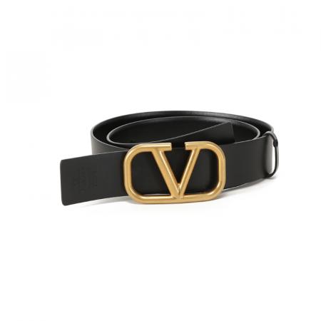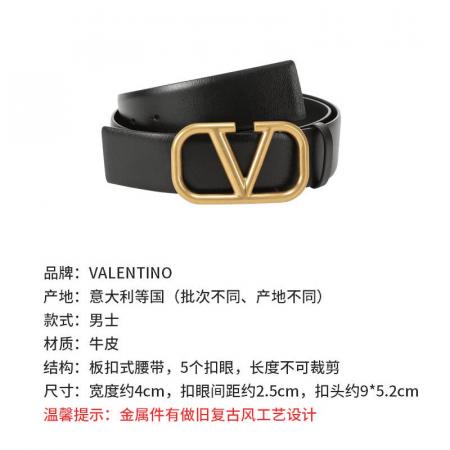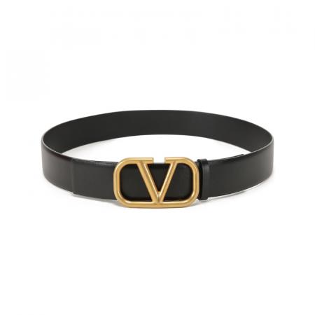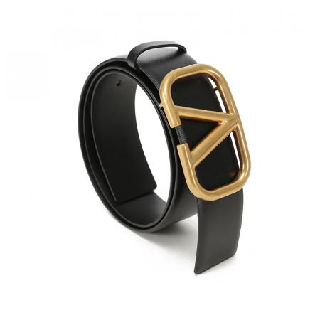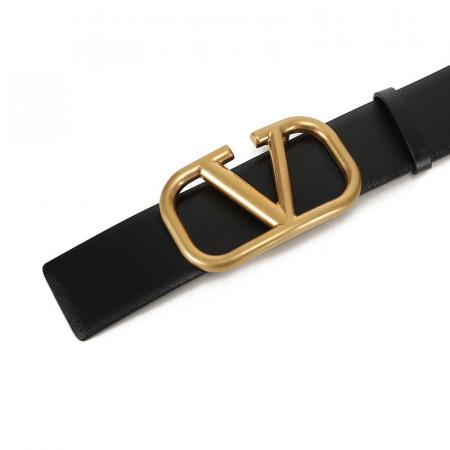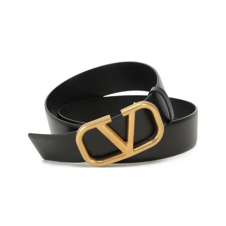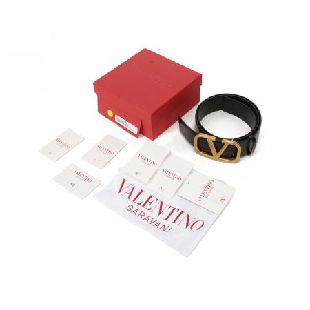 自营Valentino 华伦天奴 【新品】男士牛皮黑色复古VLOGO SIGNATURE搭扣不可裁剪双面皮带腰带4cm 5Y2T0Q87ECU 0NO