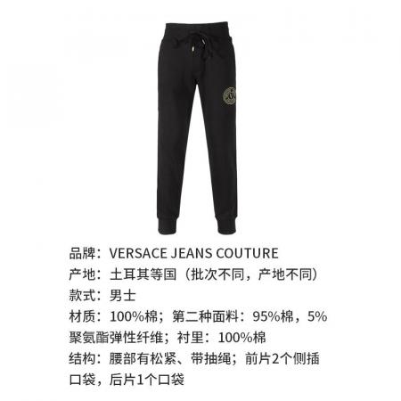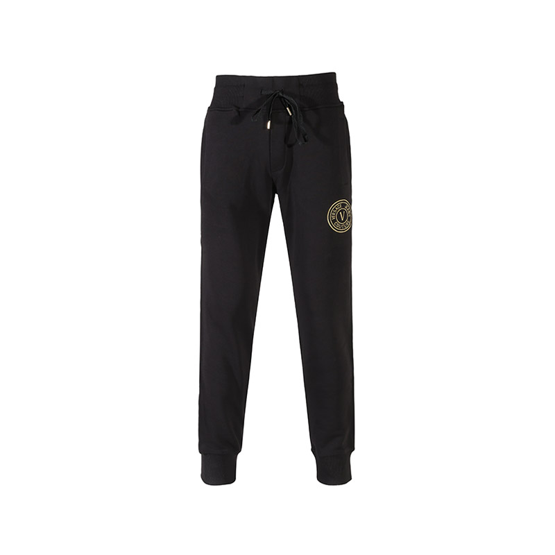 自营Versace Jeans Couture 范思哲 【新品】男士棉质黑色V字徽章刺绣抽绳裤运动休闲裤长裤卫裤 77GAAT00 CF00T G89