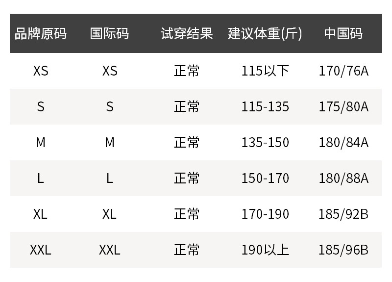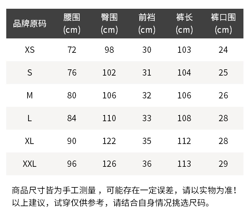 - 尺码说明