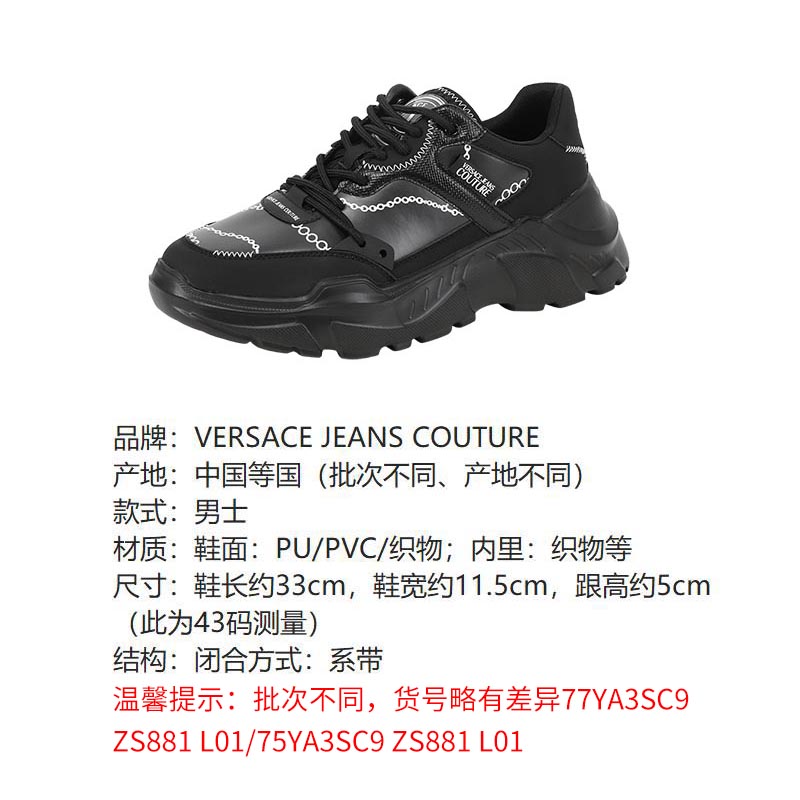 自营Versace Jeans Couture 范思哲【新品】 男士黑色LOGO印花Speedtrack厚底老爹鞋系带运动休闲鞋 77YA3SC9 ZS881 L01