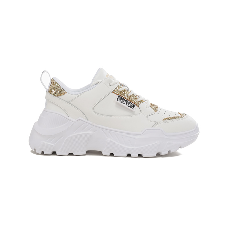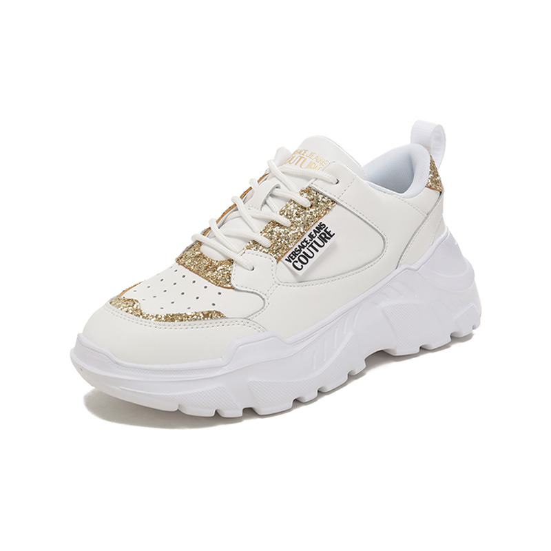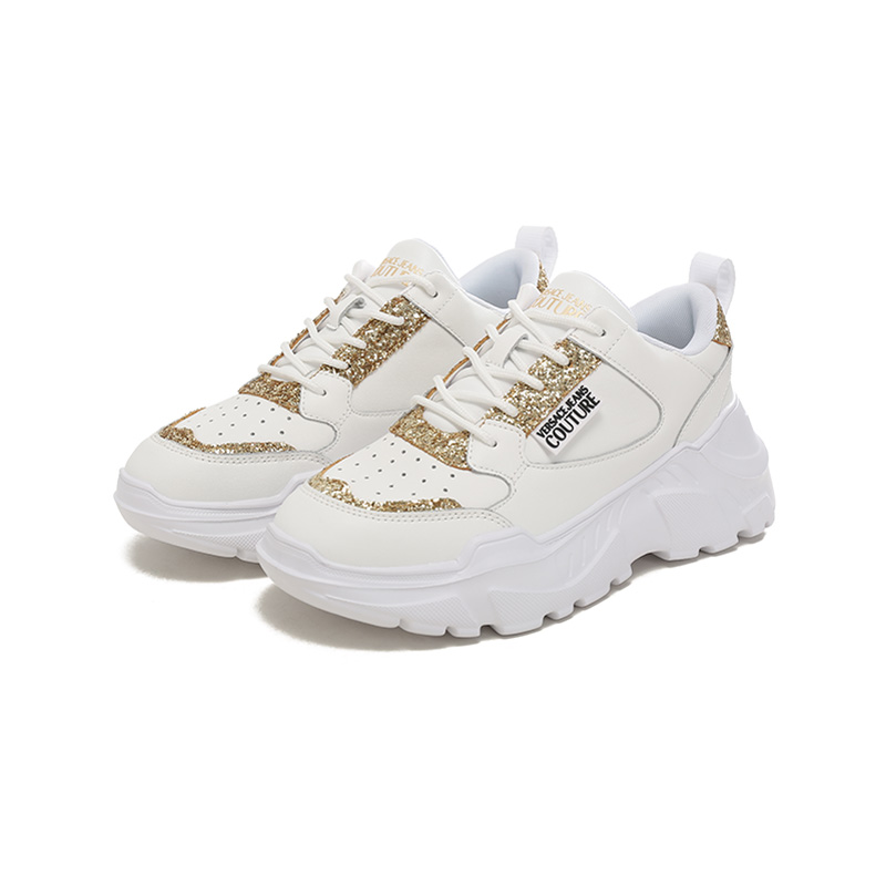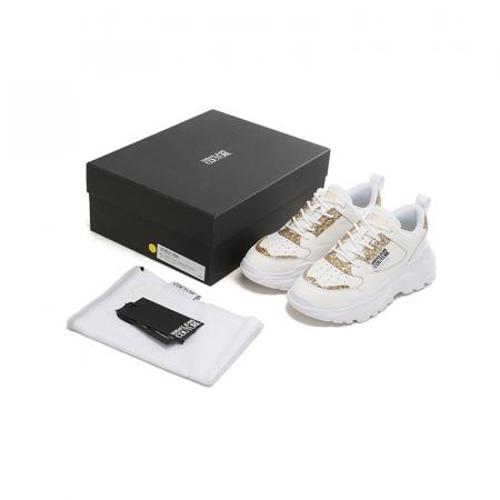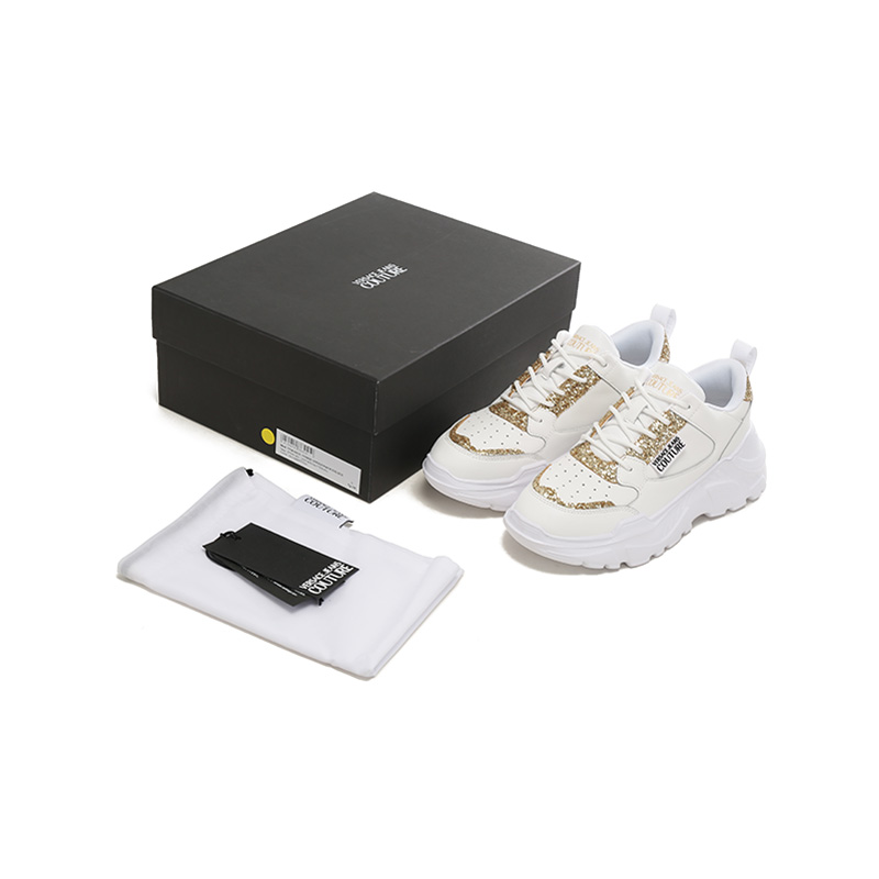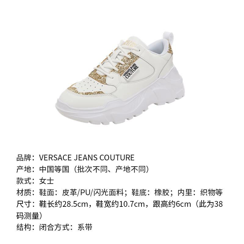 自营Versace Jeans Couture 范思哲【新品】 女士白色金尾Speedtrack厚底老爹鞋系带运动休闲鞋小白鞋跟高6cm 77VA3SC2 ZP308 G03